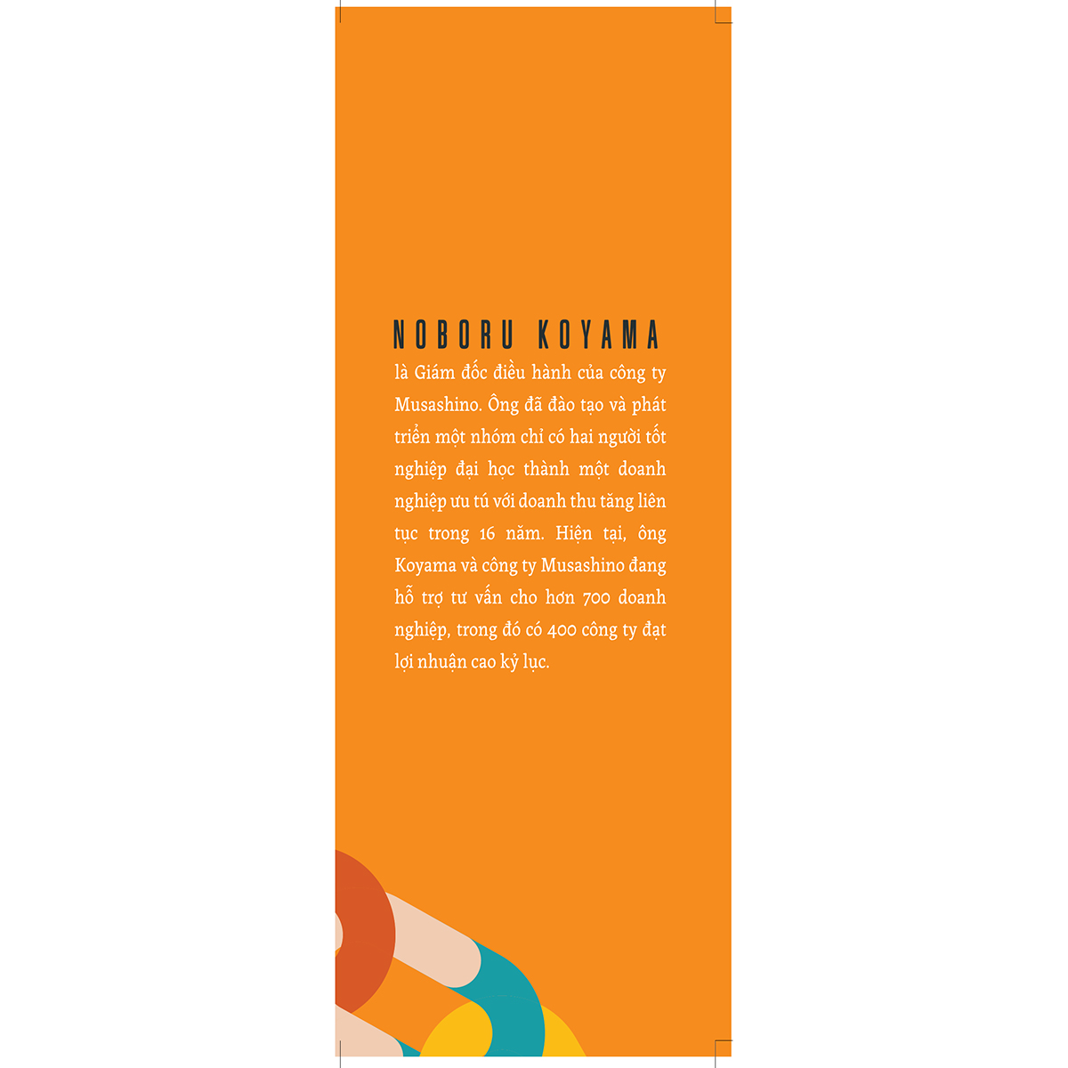 Noboru Koyama là Giám đốc điều hành của công ty Musashino. Ông đã đào tạo và phát triển một nhóm chỉ có hai người tốt nghiệp đại học thành một doanh nghiệp ưu tú với doanh thu tăng liên tục trong 16 năm.