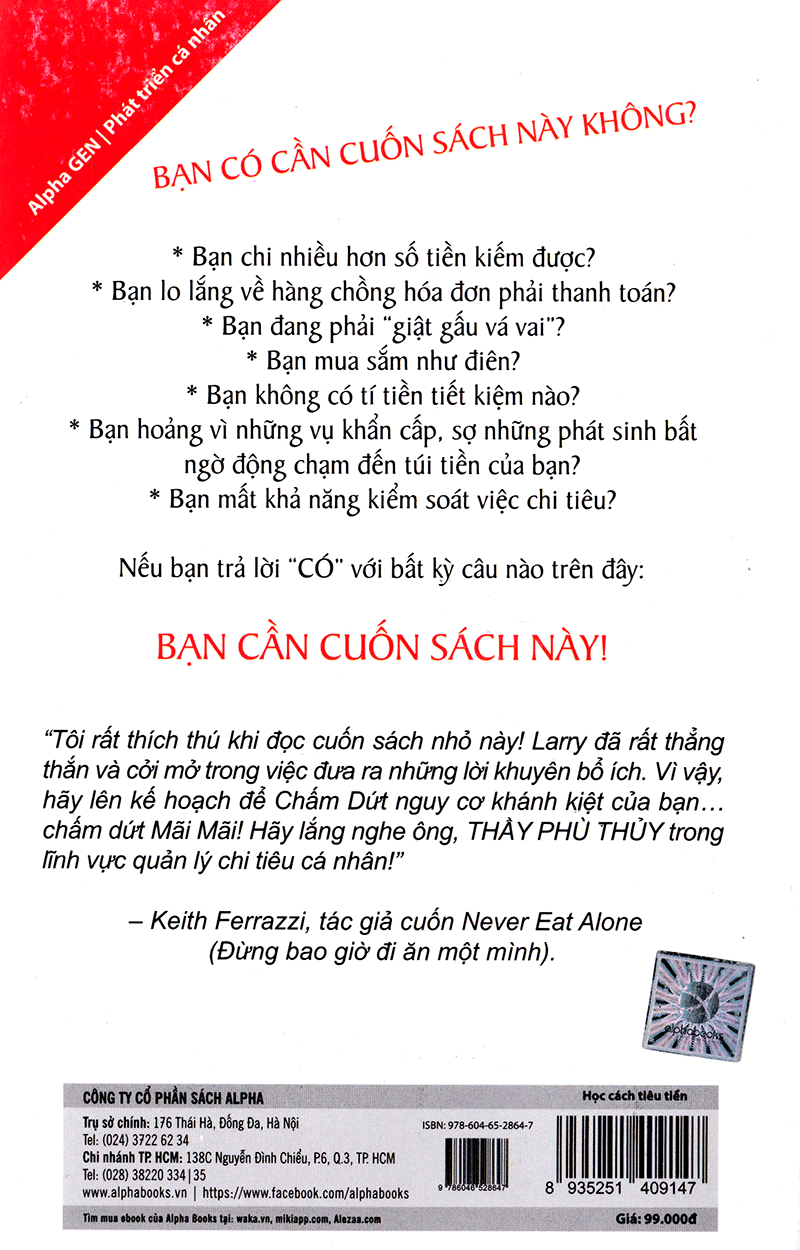 Bạn đang có một công việc kiếm sống nhưng bạn gặp khó khăn trong việc vươn lên một tầm cao mới? Bạn mong muốn tự chủ về tài chính? Bạn đang ngập trong đống nợ nần và loay hoay tìm cách thoát ra? Bạn chi nhiều hơn thu và không thể tìm ra cách để chấm dứt? Học cách tiêu tiền chính là giải pháp cho những vấn đề đó .