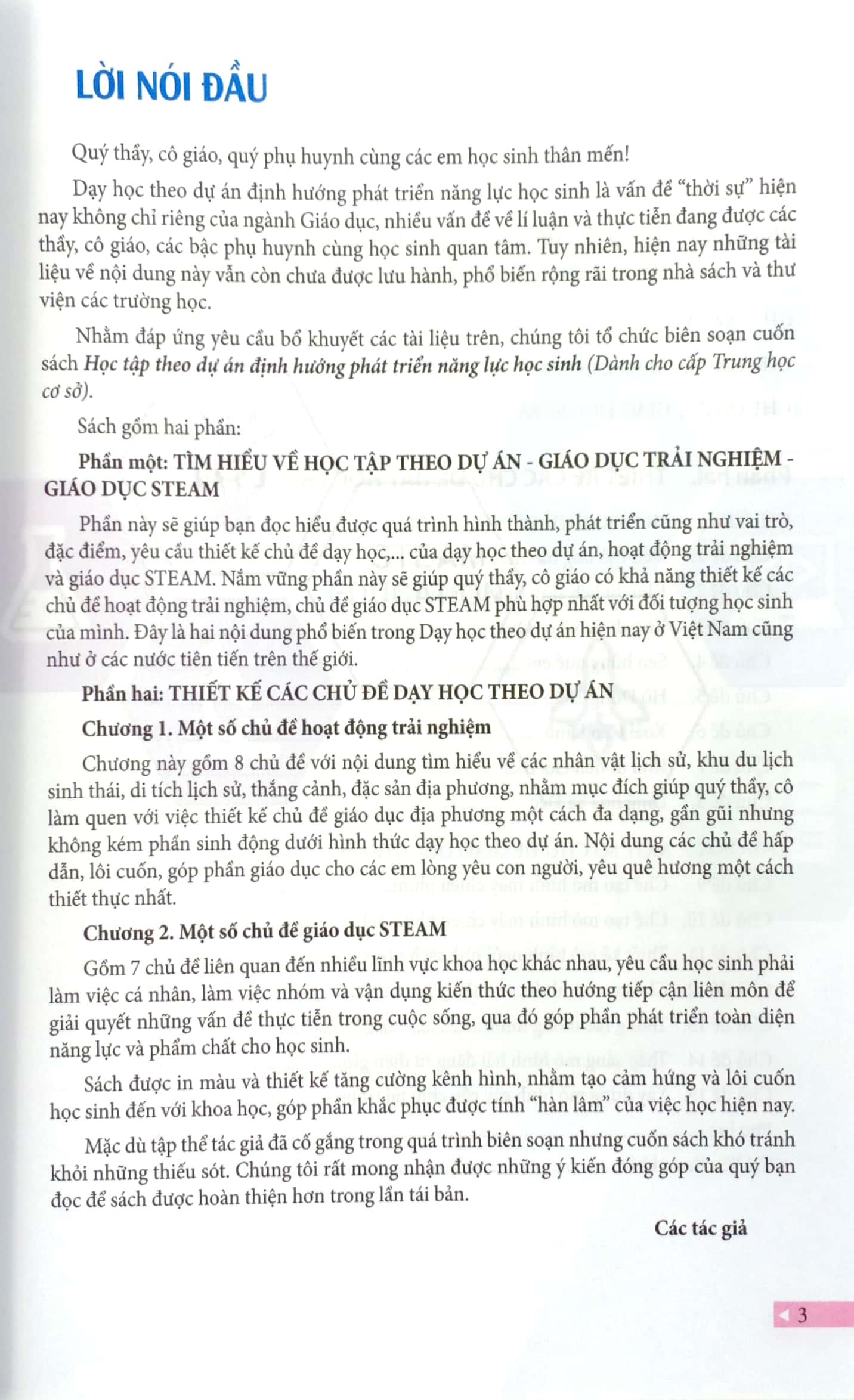 Nhằm đáp ứng yêu cầu bổ khuyết các tài liệu trên, chúng tôi tổ chức biên soạn cuốn sách Học tập theo dự án định hướng phát triển năng lực học sinh (Dành cho cấp Trung học cơ sở).