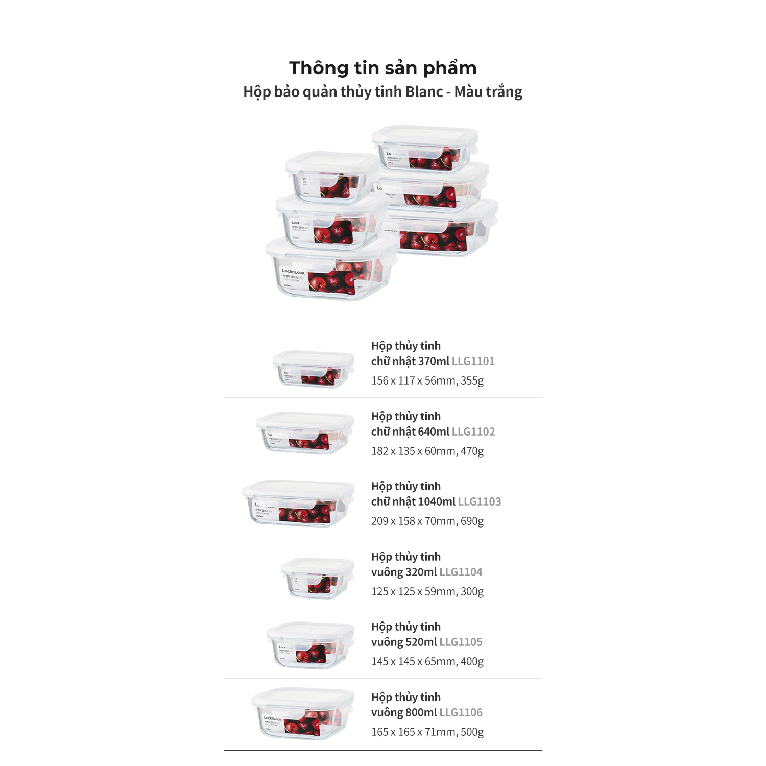 Hộp thủy tinh LocknLock BLANC bảo quản thực phẩm 370ml LLG1101 - Hàng chính hãng, chịu nhiệt cao - JoyMall Thông tin sản phẩm hộp bảo quản thực phẩm LocknLock LLG110 - Thương hiệu: LocknLock