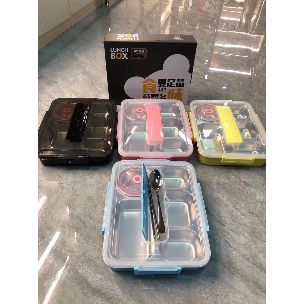 Hộp Cơm Văn Phòng 5 Ngăn Inox 304 Giữ Nhiệt Chống Tràn Có Giá Điện Thoại Tặng Thìa Đũa Cao Cấp- Hàng Chính Hãng MINIIN