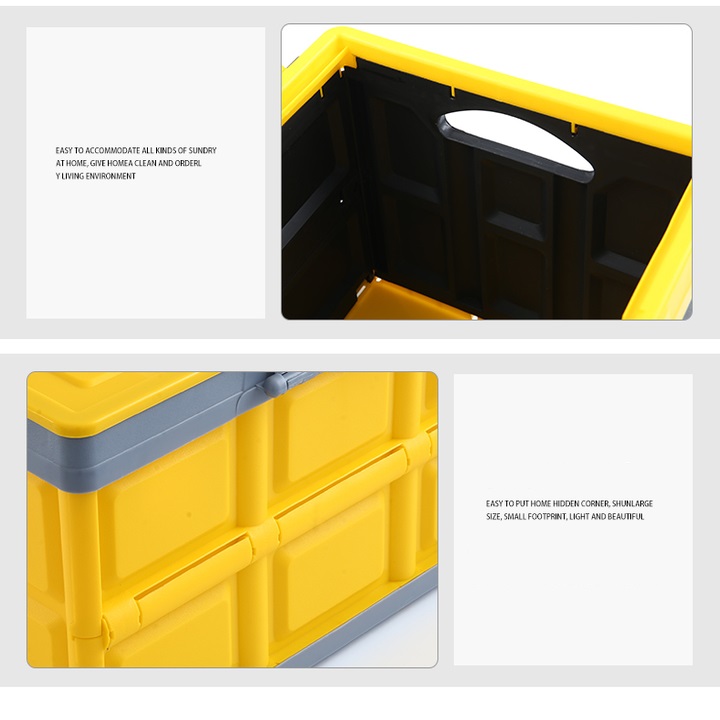 - Thùng đựng đồ để cốp xe hơi thiết kế màu sắc trang nhã, có tay cầm thuận và khóa nắp đậy tiện trong việc di chuyển. Các mối nối được cố định bằng đinh thép đảm bảo độ chắc chắn, bền bỉ. Đế thùng có độ ma sát cao, chống mài mòn do cọ sát trong quá trình xe di chuyển. Lợi ích khi sử dụng thùng đựng đồ gấp gọn để cốp xe ô tô 55 lít