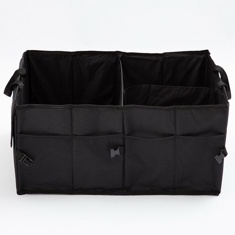 Hộp để đồ đa năng gấp gọn ở cốp sau xe hơi ô tô. Khi không dùng gấp gọn lại như 1 chiếc túi xách kích thước 40x26cm, khi kéo ra thành hộp đồ lớn kích thước 56x40x26cm - Tạo không gian lưu trữ đồ đạc thoải mái và tiện nghi trong chiếc xe hơi của bạn. - Gọn gàng, ngăn nắp hơn. Không còn tình trạng bừa bộn - Không còn tình trạng tìm kiếm khắp nơi mà không thấy đồ cần thiết đâu nữa. - Tiết kiệm được diện tích trên xe, xe sạch sẽ hơn, sang trọng hơn - Có thể dễ dàng gập lại khi không dùng đến Chất liệu: Vải dù, rất bền, chống bẩn Màu đen, trọng lượng 500g