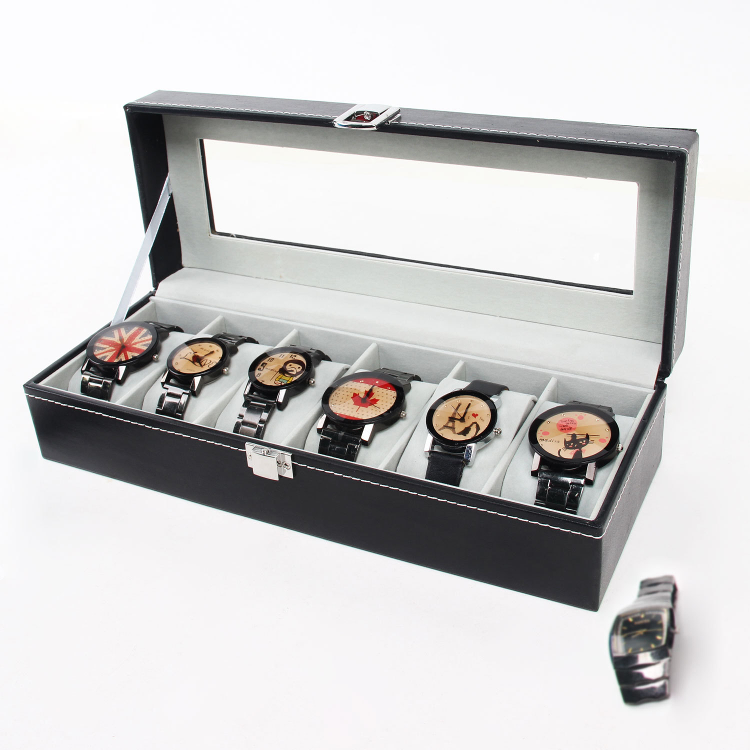 Hộp Đồng Hồ 6 Ngăn SAIKE SAIKE S6007 Vỏ Da Màu Đen Lót Xám