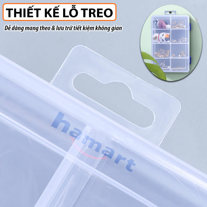 Hộp nhựa trong suốt chia ngăn 10/24 ô để đựng các linh kiện điện tử nhỏ, ốc vít, các món đồ trang sức, bông tai, nhẫn, cúc áo, móc khóa ... có nắp khoá kín và lỗ treo tường tiện lợi, lưu trữ tiện ích, tiết kiệm không gian lý tưởng.
