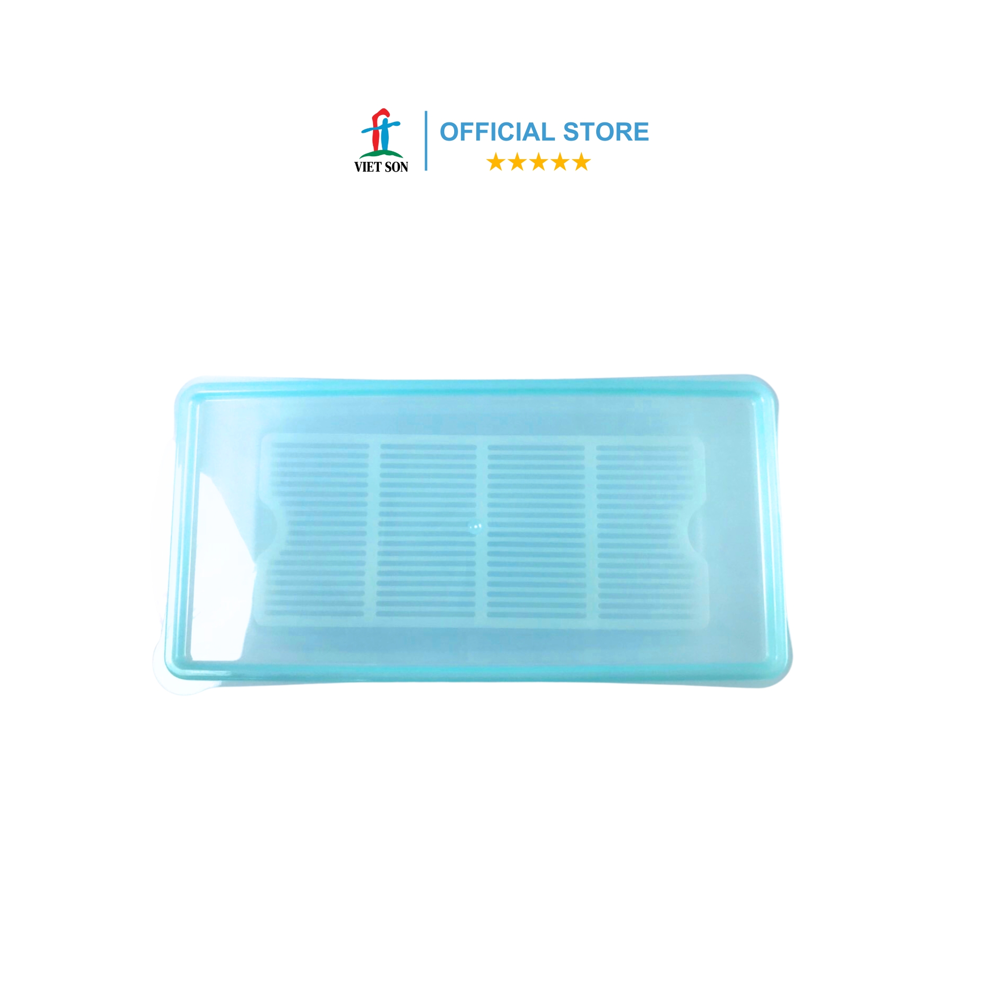 Hộp Nhựa Thực Phẩm Chữ Nhật Nắp Kín Có Khay Ráo Nước Việt Son 2L có khay tách nước cực kì tiện lợi, nắp đậy bảo quản và có thể xếp chồng các hộp nhờ đó tủ lạnh sẽ gọn gàng cùng với thức ăn được bảo quản tốt nhất.