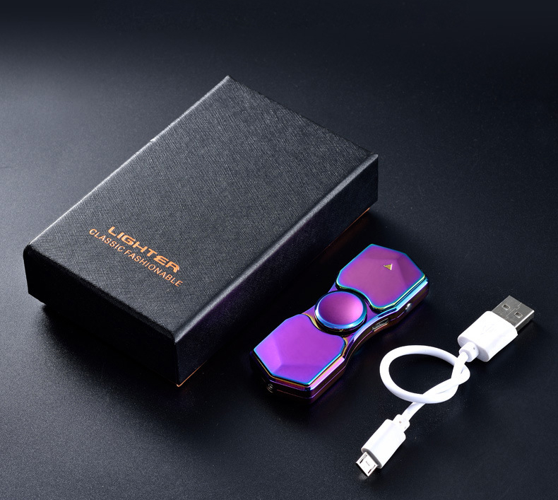 [Hộp Quẹt] Bật Lửa Hồng Ngoại Sạc Điện Qua Cổng USB Kiểu Dáng Spinner 3 Cánh Tạo 18 Hiệu Ứng Đèn Led
