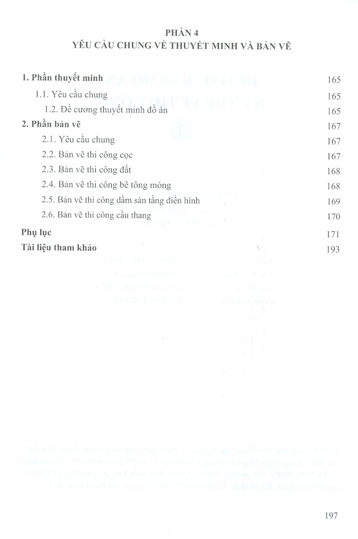 Phần 4. Yêu cầu chung về thuyết minh và bản vẽ: Đưa ra các yêu cầu thể hiện thuyết minh và bản vẽ kỹ thuật thi công cho các phần.