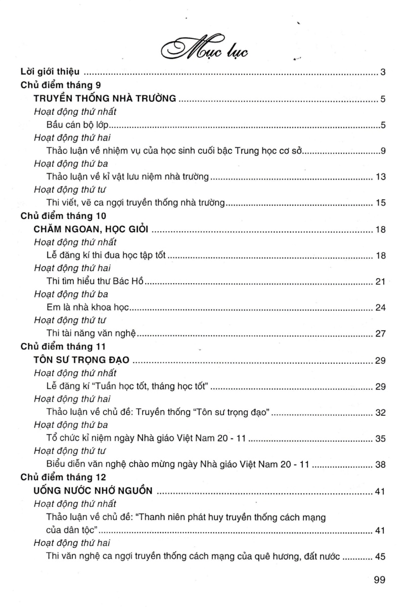 Trong cuốn sách này, chúng tôi có đưa thêm nội dung giáo dục về Quyền Trẻ em, được tích hợp vào một số hoạt động của một số chủ điểm giáo dục. Hi vọng khi sử dụng cuốn sách lớp 9 này, giáo viên có thêm tài liệu để tổ chức hiệu quả các hoạt động giáo dục ngoài giờ lên lớp phù hợp với đặc điểm và điều kiện của lớp, của trường mình.