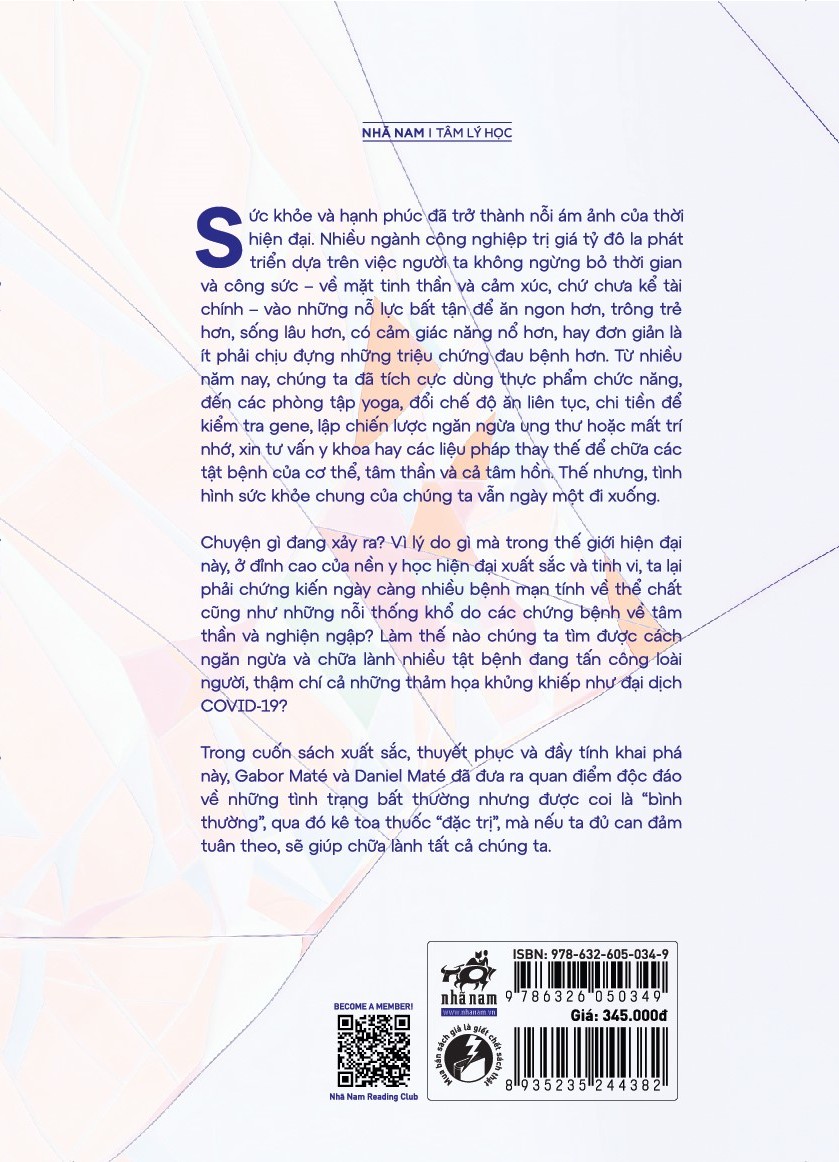 Trong cuốn sách xuất sắc, thuyết phục và đầy tính khai phá này, Gabor Maté và Daniel Maté đã đưa ra quan điểm độc đáo về những tình trạng bất thường nhưng được coi là “bình thường”, qua đó kê toa thuốc “đặc trị”, mà nếu ta đủ can đảm tuân theo, sẽ giúp chữa lành tất cả chúng ta.