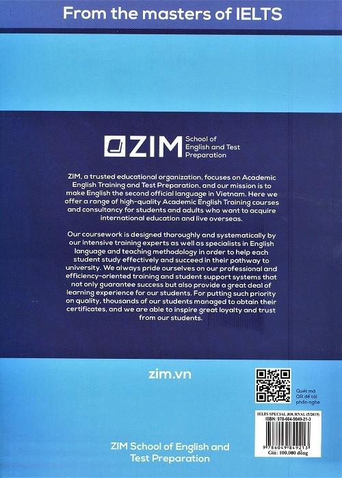 IELTS Special Journal là ấn phẩm được đội ngũ chuyên gia luyện thi IELTS tại Anh Ngữ ZIM biên soạn với mục đích giúp người học có cái nhìn cận cảnh hơn về độ khó của đề thi kỹ năng Nói và Viết cũng như cung cấp nhiều phương án xử lý các đề thi cụ thể qua việc phân tích đề và lập dàn ý. Nội dung chính của sách bao gồm: