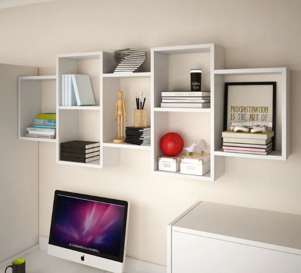 Một bộ kệ được cấu tạo thành từ 12 chiếc kệ rời, gắn lên tường với kết cấu giấu chân hoàn toàn (kệ gỗ treo tường không giá đỡ). Một lựa chọn của những vị