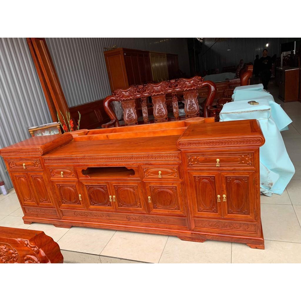 • Kệ tivi mõ gỗ hương đáKệ tivi Mõ gỗ hương đá dài 2m2(2m4) sâu 45cm cao 72 cm phun bóng PU đẹp.Đục trạm hoa văn tinh xảoCó 2 loại mõ lồi và mõ lõm