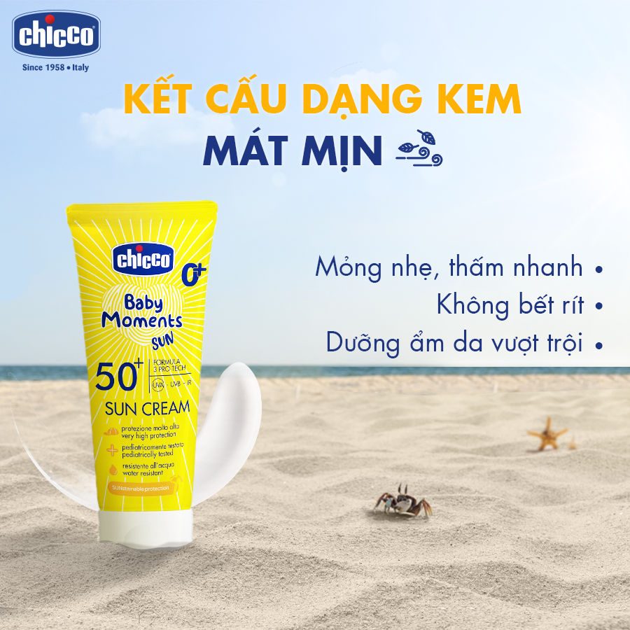 GIỚI THIỆU Kem Chống Nắng 3 Tác Động Chicco Baby Moments SPF 50+ tốt như thế nào? Kem chống nắng 3 TÁC ĐỘNG Chicco có chỉ số SPF cao (50+) giúp bảo vệ Mẹ, Bé và cả