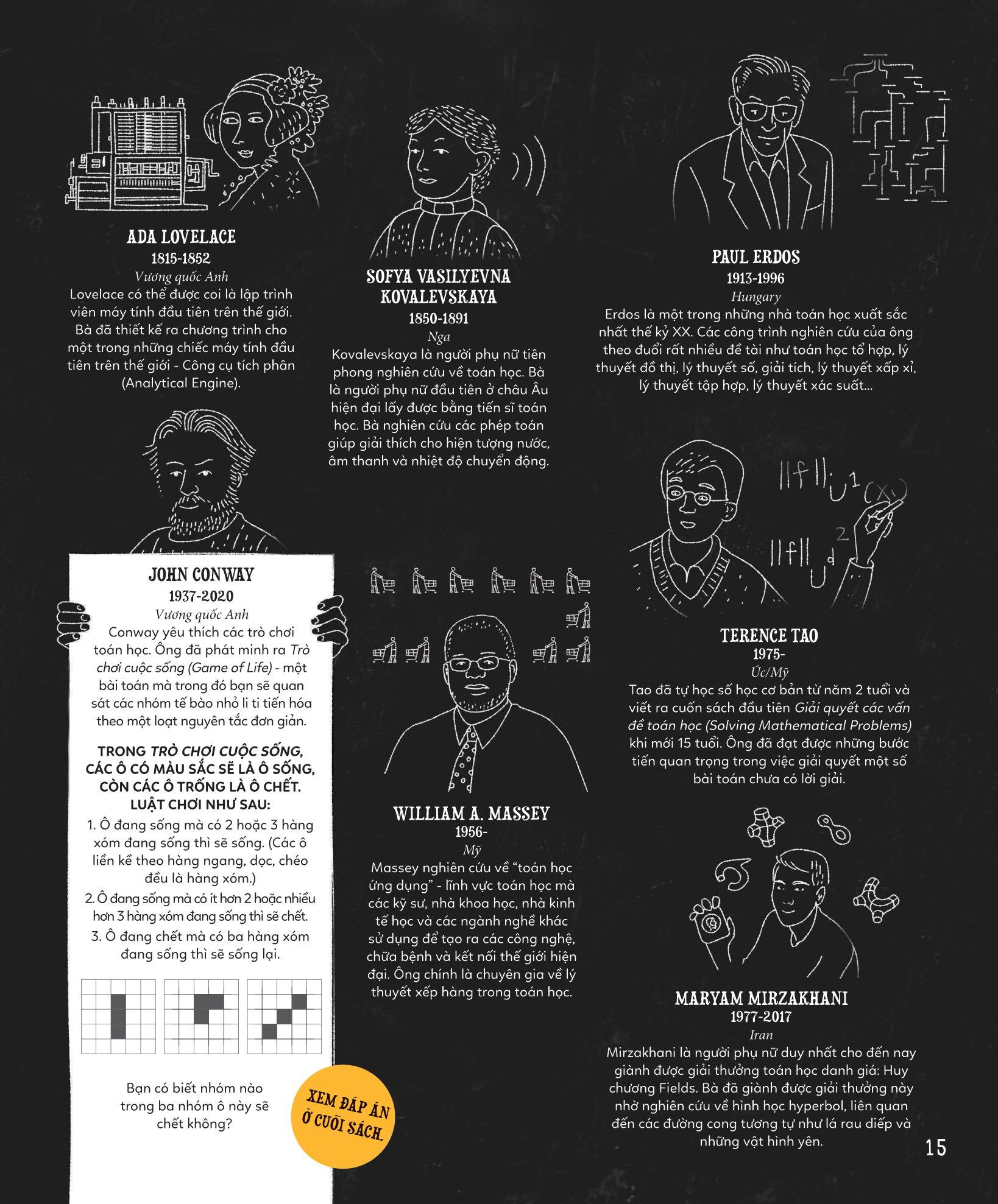 Khám Phá Toán Học Thú Vị Quanh Ta Với cuốn sách này, bạn sẽ đi từ bất ngờ này đến bất ngờ khác trên hành trình khám phá những điều thú vị về toán học, hàng trăm sự thật tuyệt vời và không kém phần kỳ lạ về toán học sẽ được hé lộ thông qua gần 100 trang sách. Toán học bắt nguồn từ đâu? Động vật có biết đếm không nhỉ? Định lý bánh mỳ giăm bông là gì thế? Tại sao số 0 lại là số hữu ích nhất trong tất cả các số? Toán học có thể giúp bạn giành chiến thắng trong các trò chơi như thế nào? Bạn đã sẵn sàng tìm kiếm câu trả lời cho những câu hỏi này chưa?