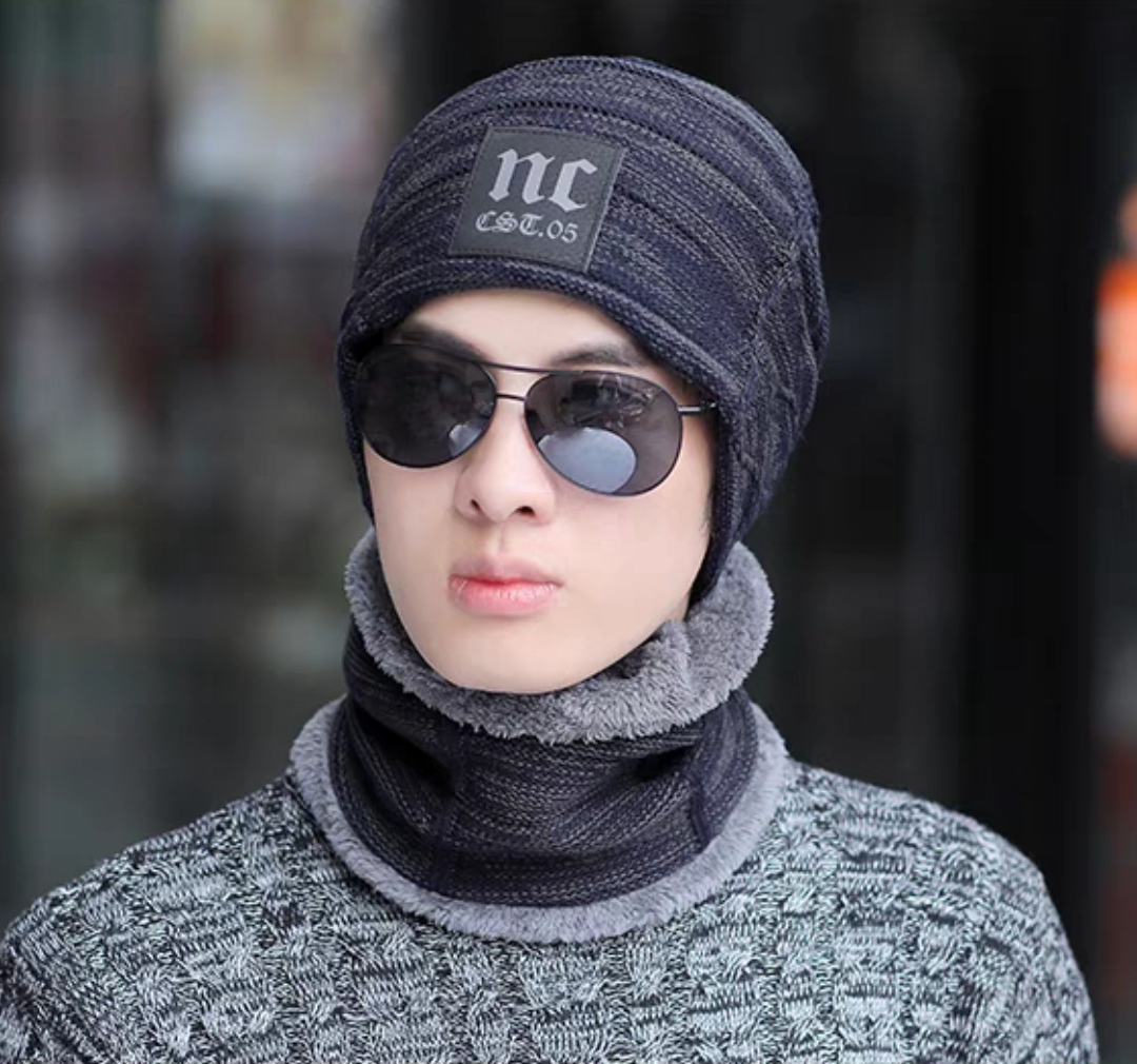 PVN55244 Mũ len cho nam kèm khăn choàng cổ mùa đông giữ ấm tốt