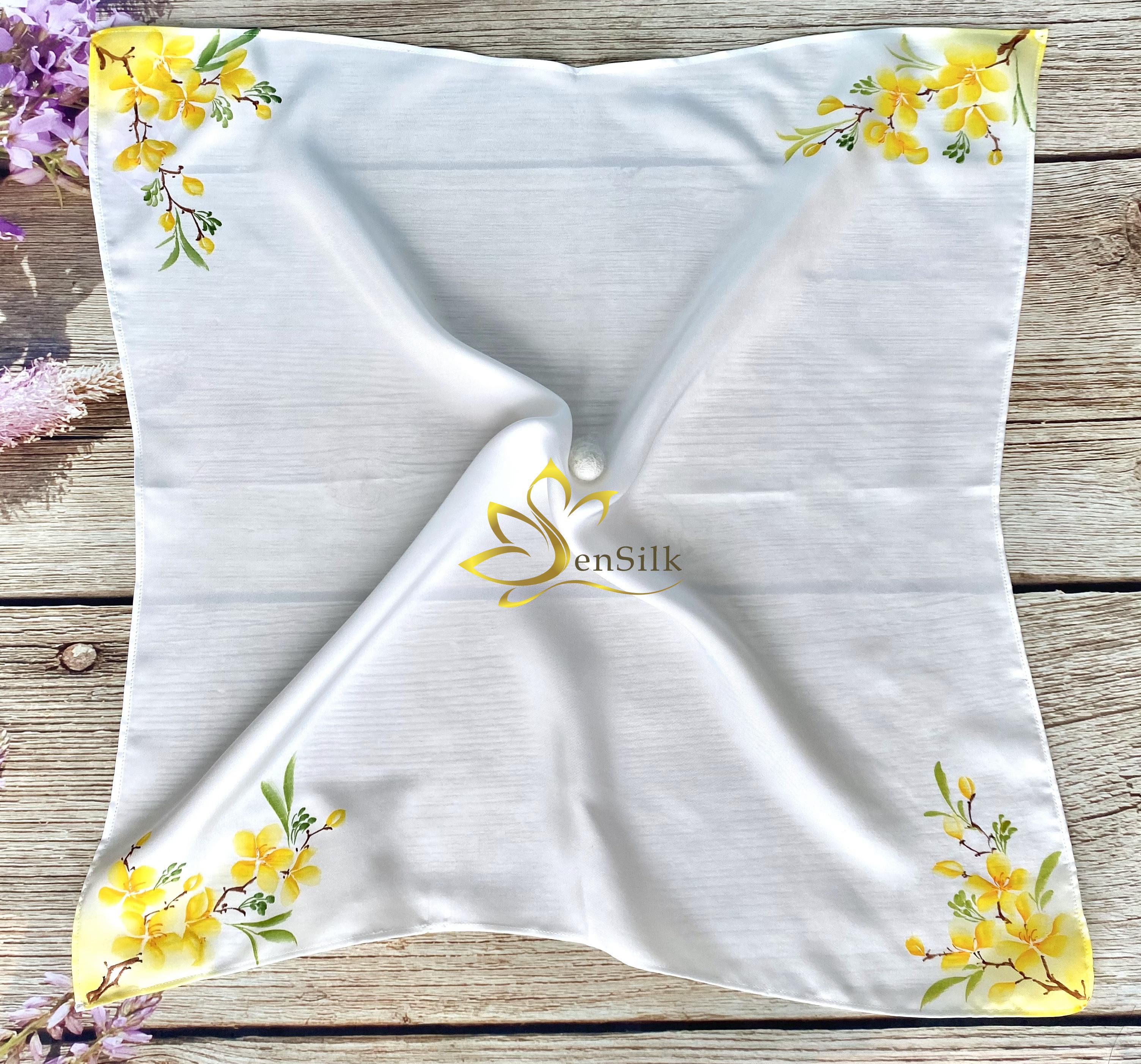 Tặng khăn lua vuông vẽ tay hoa Mai là món quà ý nghĩa, không chỉ thể hiện sự nhắc nhớ về một biểu tượng nét đẹp văn hóa Tết, một mỹ tục của người Việt mà còn biểu trưng cho sự may mắn, hạnh phúc, cũng như tình bạn khắng khít trường tồn.