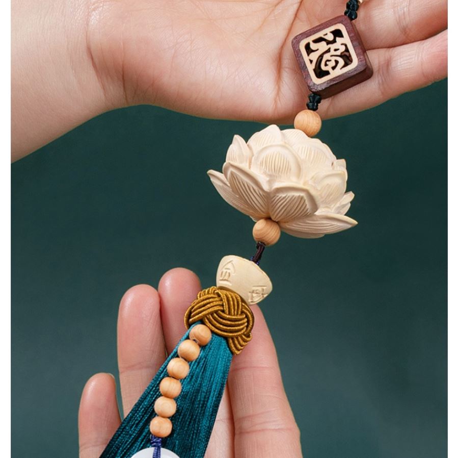 Khánh Liên Hoa Trang Trí Xe Hơi - Dây Treo Sen Gỗ Hoàng Dương - Trang Trí Ô Tô