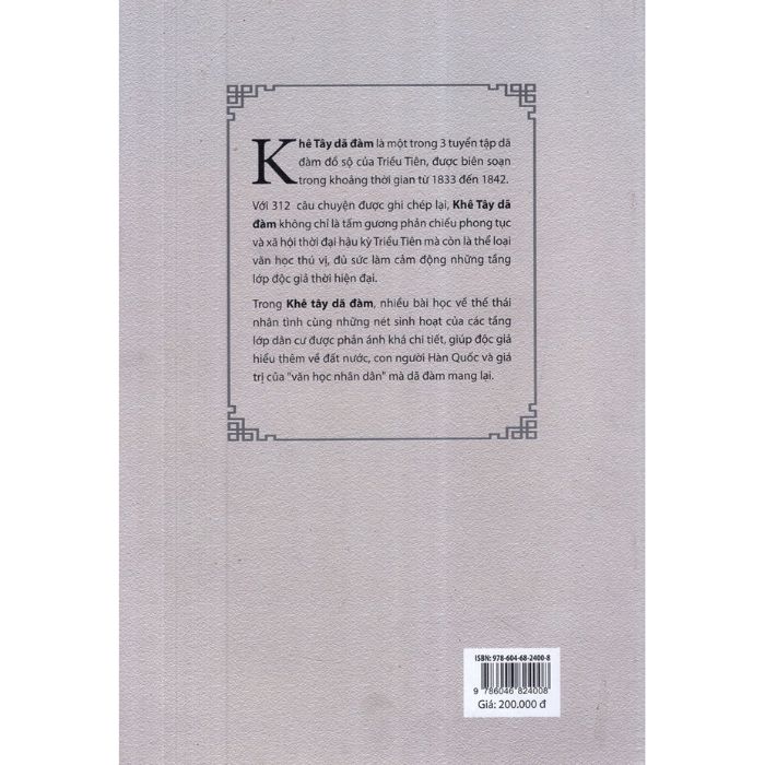 Với 312 câu chuyện được ghi chép lại, Khê tây dã đàm không chỉ là tấm gương phản chiếu phong tục và xã hội thời đại hậu kỳ Triều Tiên mà còn là thể loại văn học thú vị, đủ sức làm cảm động những tầng lớp độc giả thời hiện đại.