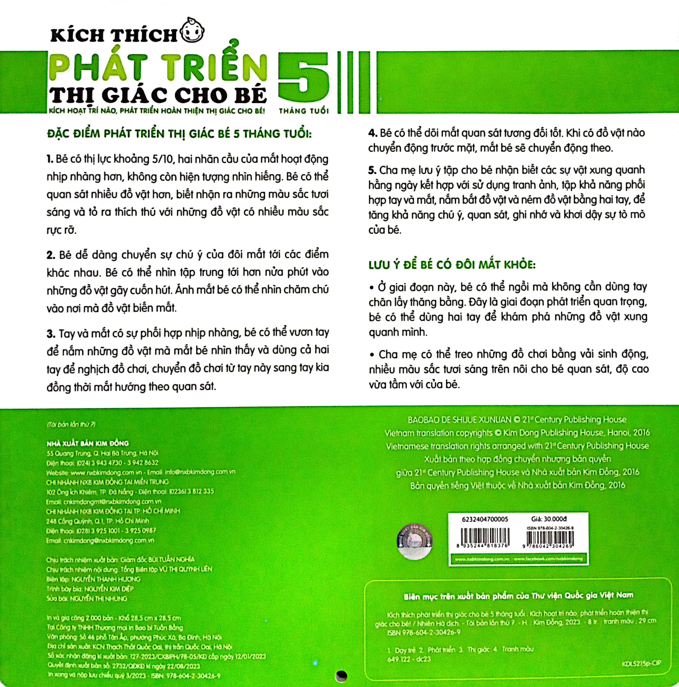 Bộ sách cung cấp những bức tranh giúp kích hoạt trí não, phát triển hoàn thiện thị giác cho bé phù hợp với mỗi giai đoạn phát triển của bé từ 0-6 tháng tuổi. Bố mẹ cũng có thể tìm thấy trong bộ sách này những lưu ý phù hợp để giúp bé có đôi mắt khỏe: