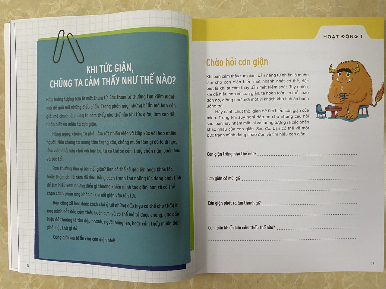 Xuyên suốt sách là những hoạt động tương tác thú vị giúp bạn hiểu thêm về bản thân và những cảm xúc của mình. Sách bày cả những trò chơi hấp dẫn dạy bạn những chiến lược ứng phó với cơn giận ở nhà, ở trường, với bạn bè hoặc người thân để sống hạnh phúc và hòa hợp với mọi người hơn.