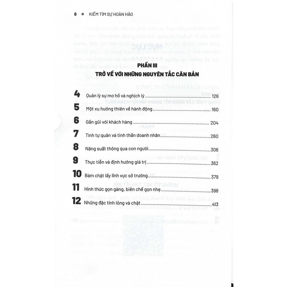 Kiếm tìm sự hoàn hảo’ là cuốn sách viết về kinh doanh hay nhất mọi thời đại, không thể thiếu trong các trường kinh doanh, trên bàn làm việc của các doanh nhân và nhà kinh tế học trên toàn thế giới.
