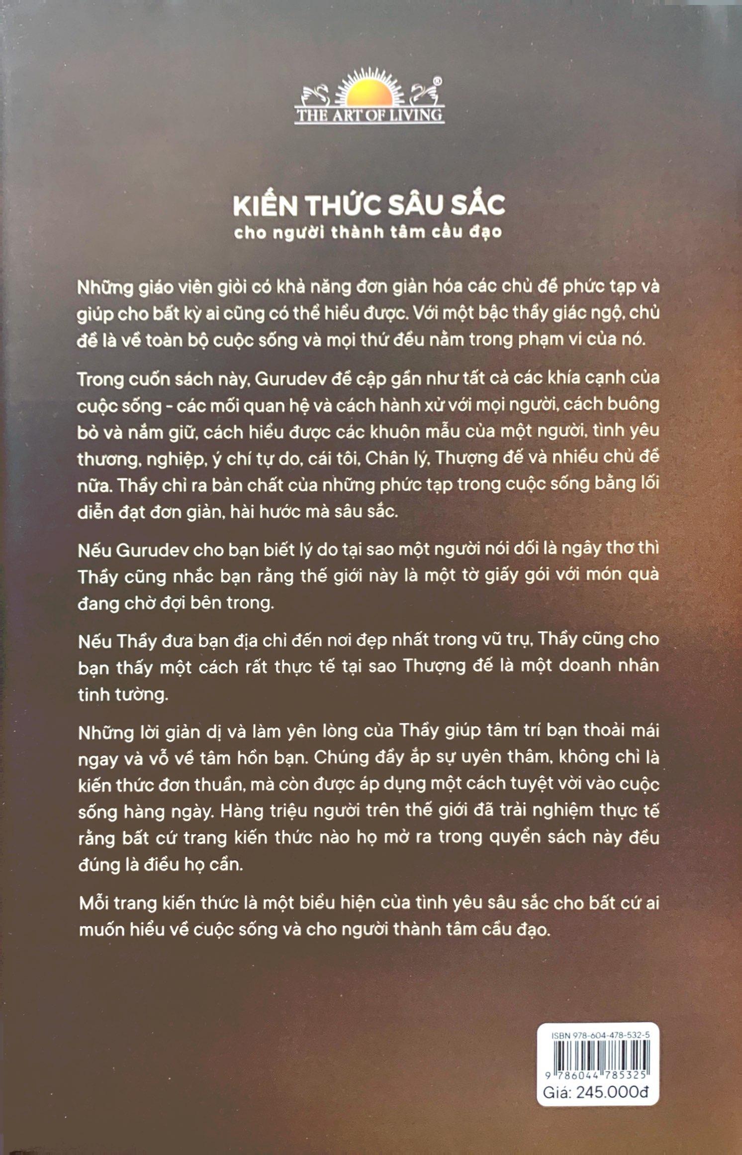 Trong cuốn sách này. Gurudev đề cập gần như tất cả các khía cạnh của cuộc sống - các mối quan hệ và cách hành xử với mọi người, cách buông bỏ và nắm giữ, cách hiểu được các khuôn mẫu của một người, tình yêu thương nghiệp, ý chí tự do, cái tôi, Chân lý, Thượng đế và nhiều chủ đề nữa. Thấy chỉ ra bản chất của những phức tạp trong cuộc sống bằng lối diễn đạt đơn giản, hài hước mà sâu sắ