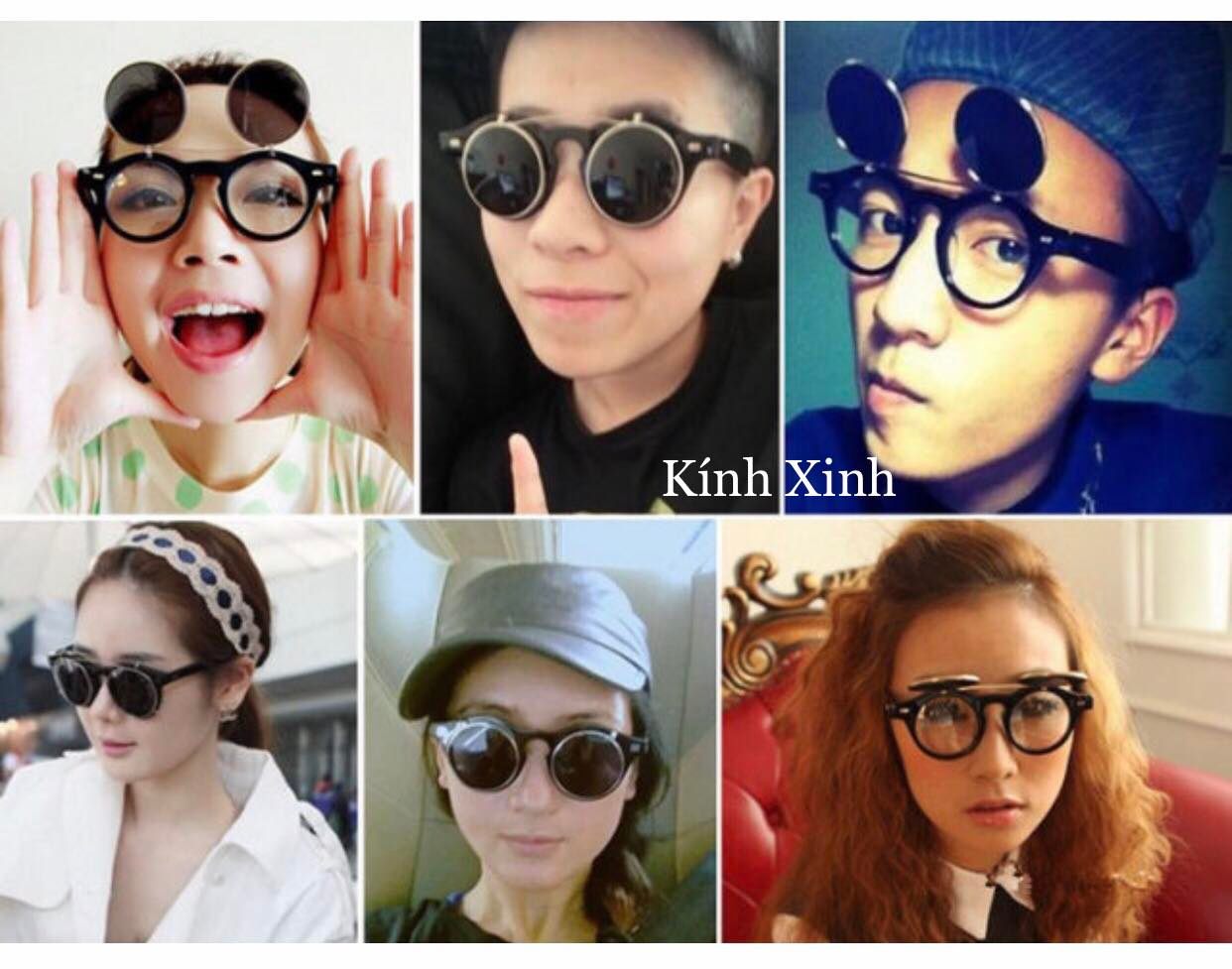Kính râm, Kính mát Nam Nữ Mắt Tròn 2 Tròng Lật Mở Nắp Gọng Nhựa Chắc Chắn