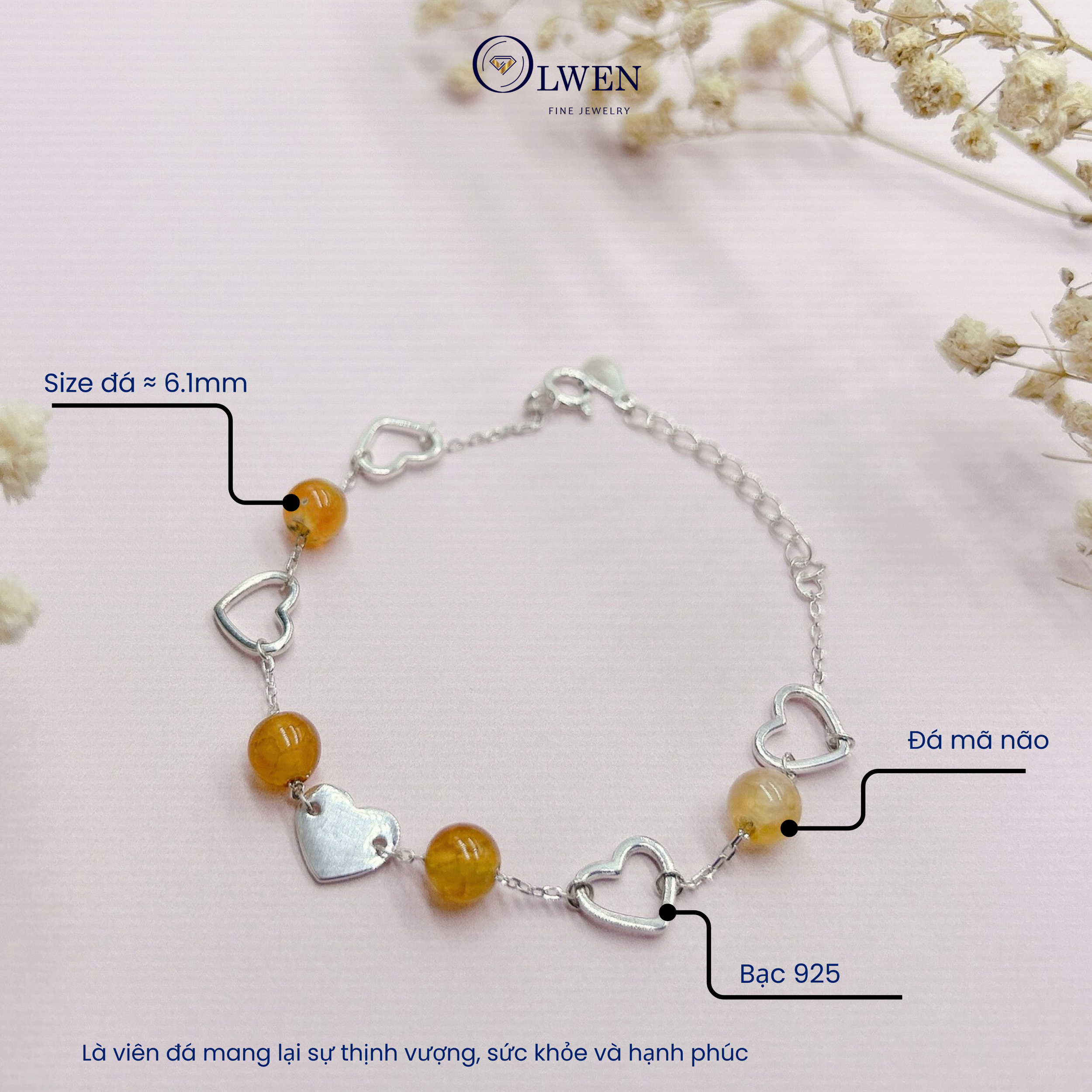 ✨Lắc Tay Bạc Nữ S925 Gắn Đá Mã Não BAC_B03