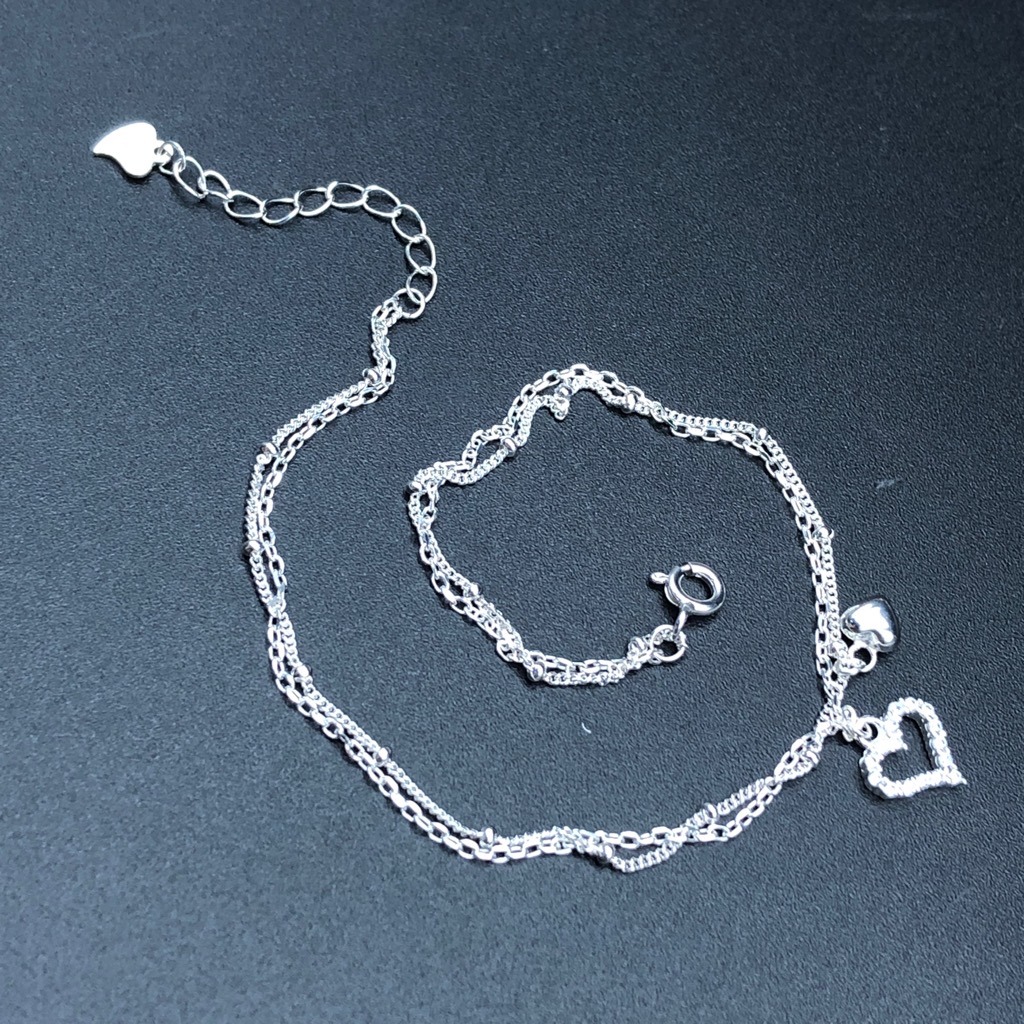 ✨Lắc Chân Nữ Bạc 925 Dây Kép Trái Tim Bạc Hiểu Minh LC240