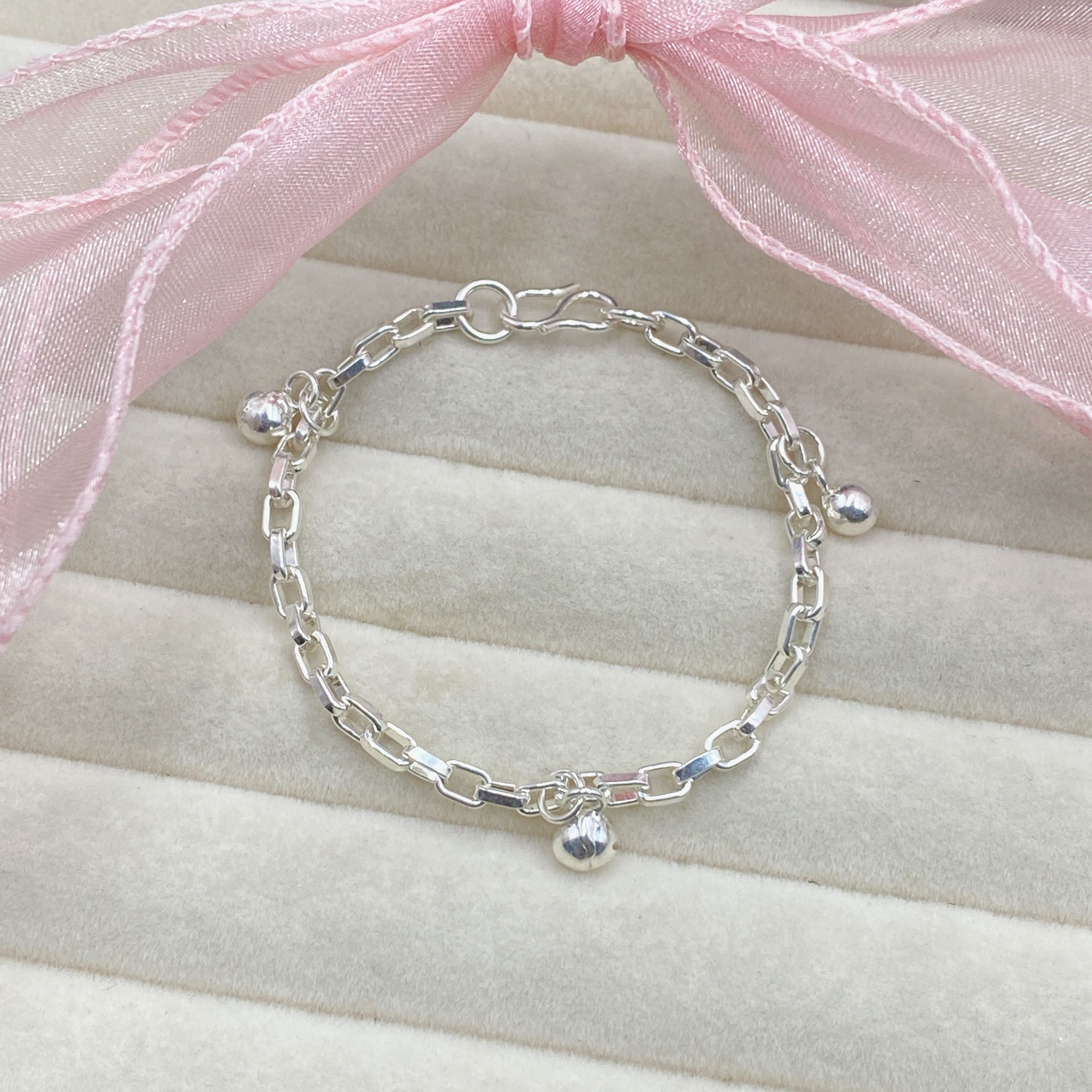 Lắc tay bạc cho bé - lắc bi phay treo charm - Bạc Nhỏ Store