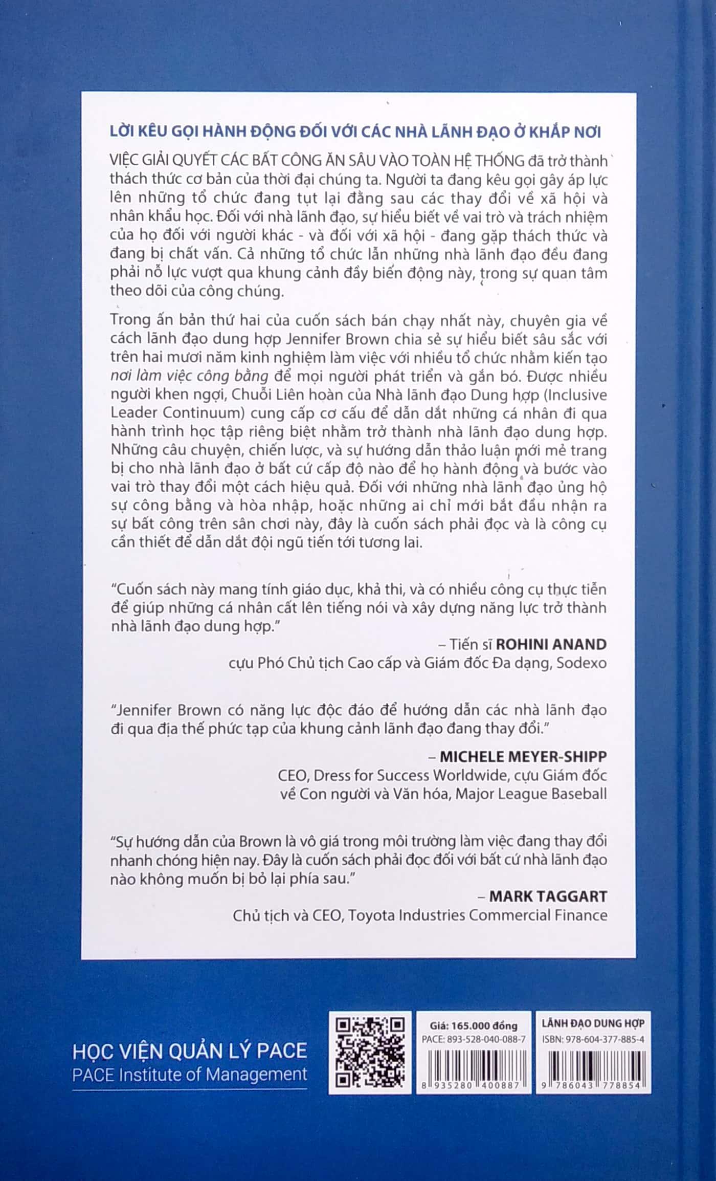 Trong ấn bản thứ hai của cuốn sách bán chạy nhất này, chuyên gia về cách lãnh đạo dung hợp Jennifer Brown chia sẻ sự hiểu biết sâu sắc với trên hai mươi năm kinh nghiệm làm việc với nhiều tổ chức nhằm kiến tạo nơi làm việc công bằng để mọi người phát triển và gắn bó. Được nhiều người khen ngợi, Chuỗi Liên hoàn của Nhà lãnh đạo Dung hợp (Inclusive Leader Continuum) cung cấp cơ cấu để dẫn dắt những cá nhân đi qua hành trình học tập riêng biệt nhằm trở thành nhà lãnh đạo dung hợp. Những câu chuyện, chiến lược, và sự hướng dẫn thảo luận mới mẻ trang bị cho nhà lãnh đạo ở bất cứ cấp độ nào để họ hành động và bước vào vai trò thay đổi một cách hiệu quả. Đối với những nhà lãnh đạo ủng hộ sự công bằng và hòa nhập, hoặc những ai chỉ mới bắt đầu nhận ra sự bất công trên sân chơi này, đây là cuốn sách phải đọc và là công cụ cần thiết để dẫn dắt đội ngũ tiến tới tương lai.