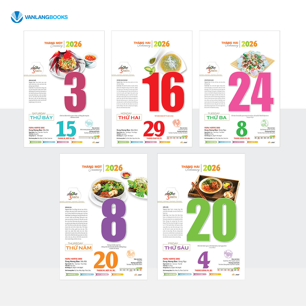 Lịch 2026 Bloc Siêu Đại – Chủ Đề Ẩm Thực Ba Miền | Lịch Tết Treo Tường Cao Cấp Vanlangbooks | FREESHIP (Mã: VL05a) Lịch 2026 Bloc Siêu Đại – Chủ đề Ẩm Thực Ba