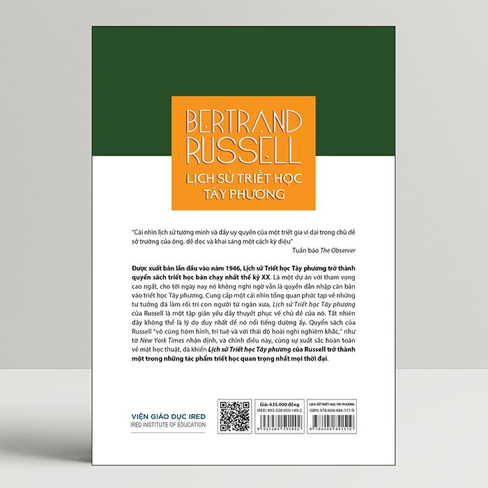 Được xuất bản lần đầu vào năm 1946, Lịch sử Triết học Tây phương trở thành quyển sách triết học bán chạy nhất thế kỷ XX. Là một dự án với tham vọng cao ngất, cho tới ngày nay nó không nghi ngờ vẫn là quyển dẫn nhập căn bản vào triết học Tây phương. Cung cấp một cái nhìn tổng quan phức tạp về những tư tưởng đã làm rối trí con người từ ngàn xưa, Lịch sử Triết học Tây phương của Russell là một tập giản yếu đầy thuyết phục về chủ đề của nó. Tất nhiên đây không thể là lý do duy nhất để nó nổi tiếng dường ấy. Quyển sách của Russell "vô cùng hóm hỉnh, trí tuệ và với thái độ hoài nghi nghiêm khắc," như tờ New York Times nhận định, và chính điều này, cùng sự xuất sắc hoàn toàn về mặt học thuật, đã khiến Lịch sử Tríết học Tây phương của Russell trở thành một trong những tác phẩm triết học quan trọng nhất mọi thời đại.