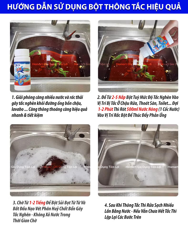 Bột Thông Cống Cực Mạnh - Sử Dụng Đơn Giản Hiệu Quả Nhanh Chóng