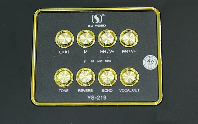 - Loa karaoke bluetooth YS-219 có các nút điều chỉnh echo, reverb, effect, đổi giọng … được tích hợp ngay trên phần đỉnh đầu của loa giúp cho việc sử dụng trở nên dễ dàng hơn.