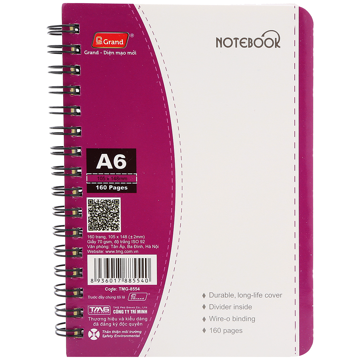 - Lưu Ý màu giao ngẫu nhiên tùy đợt nhập hàng - Lốc 2 Sổ Lò Xo Grand A6 - 240 Trang Bìa Giấy được thiết kế đẹp, sang trọng, chất lượng với chất liệu