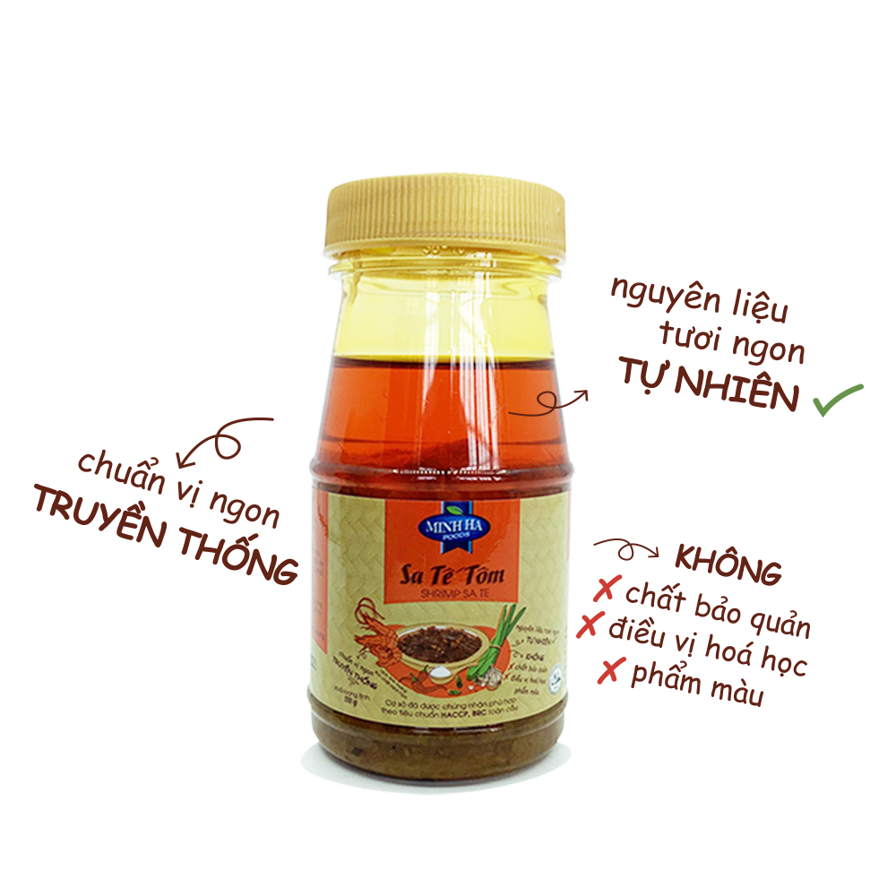 LỐC 6 HŨ SA TẾ TÔM 110g x6 hũ Nguyên liệu tươi ngon tự nhiên - Chuẩn vị truyền thống KHÔNG: điều vị hóa học, phẩm màu, chất bảo quản Thành phần: Dầu ăn, tỏi, đường, ruốc, ớt, sả, hành, nước mắm, hạt điều, Chỉ tiêu chất lượng: Hàm lượng muối: 4 % - 5.5 % Hướng dẫn sử dụng : Dùng để ướp các món nướng, gia vị làm bánh tráng trộn hoặc ăn trực tiếp với các món bún bò huế, phở, lẩu thái, bò viên chiên, Bảo quản : bảo quản nơi thoáng mát, đậy kín nắp sau khi sử dụng Hạn sử dụng : 01 năm, sau khi mở nắp, nên sử dụng trong vòng 1 tuần là ngon nhất. Phân phối : Sản phẩm hiện có mặt ở hầu khắp các hệ thống siêu thị trên toàn quốc