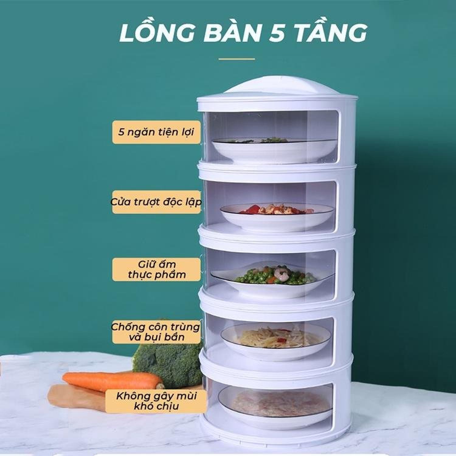 • Lồng bàn 5 tầng đậy thức ăn giữ nhiệt bảo vệ cách ly, chống bụi tiện dụng dễ dàng bảo quản đồ ăn mà không tốn không gian. Lồng đậy bảo vệ thức ăn thơm ngon lành mạnh, lỗ thông hơi được mã hóa làm bay hơi nước mà không ảnh hưởng đến hương vị thực phẩm.