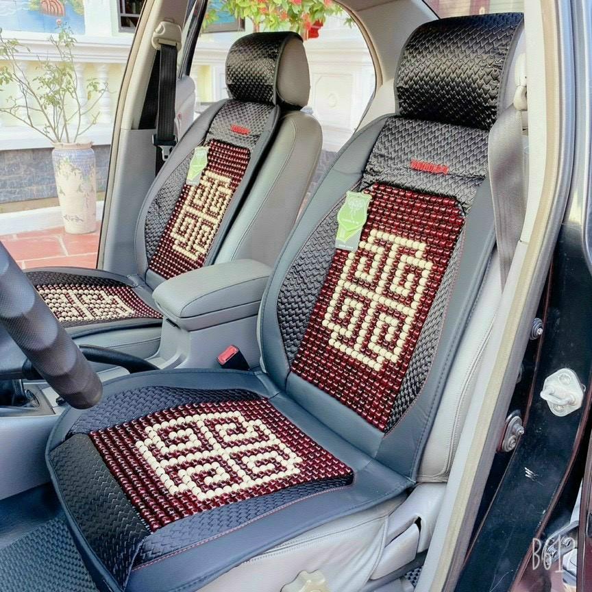 Lót Ghế Ô Tô Hạt Gỗ Massage, Chống Nóng hoạ tiết hoa văn bắt mắt, sang trọng - Hàng Nhập Khẩu
