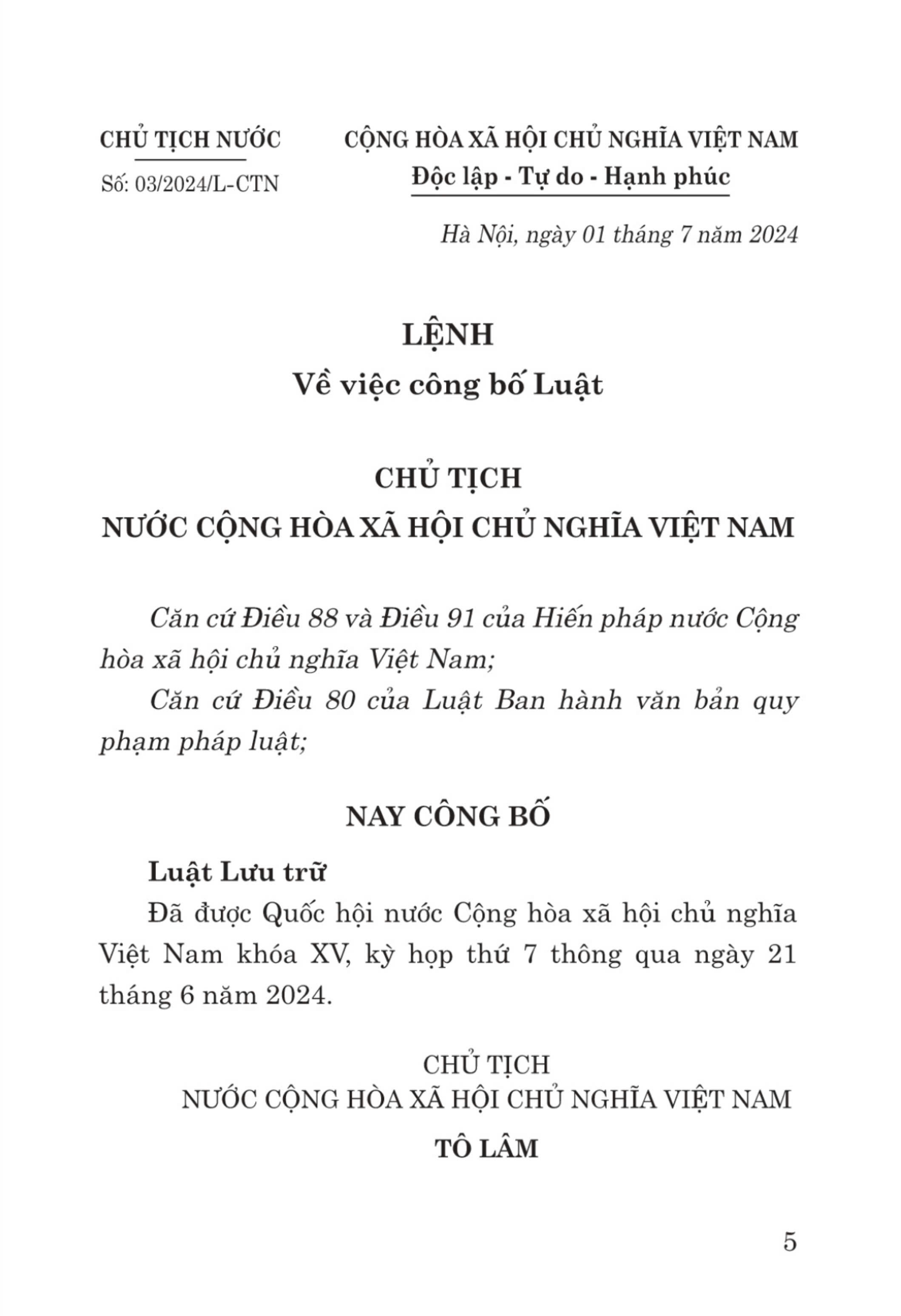 ✨Luật lưu trữ năm 2024 - bản in 2024