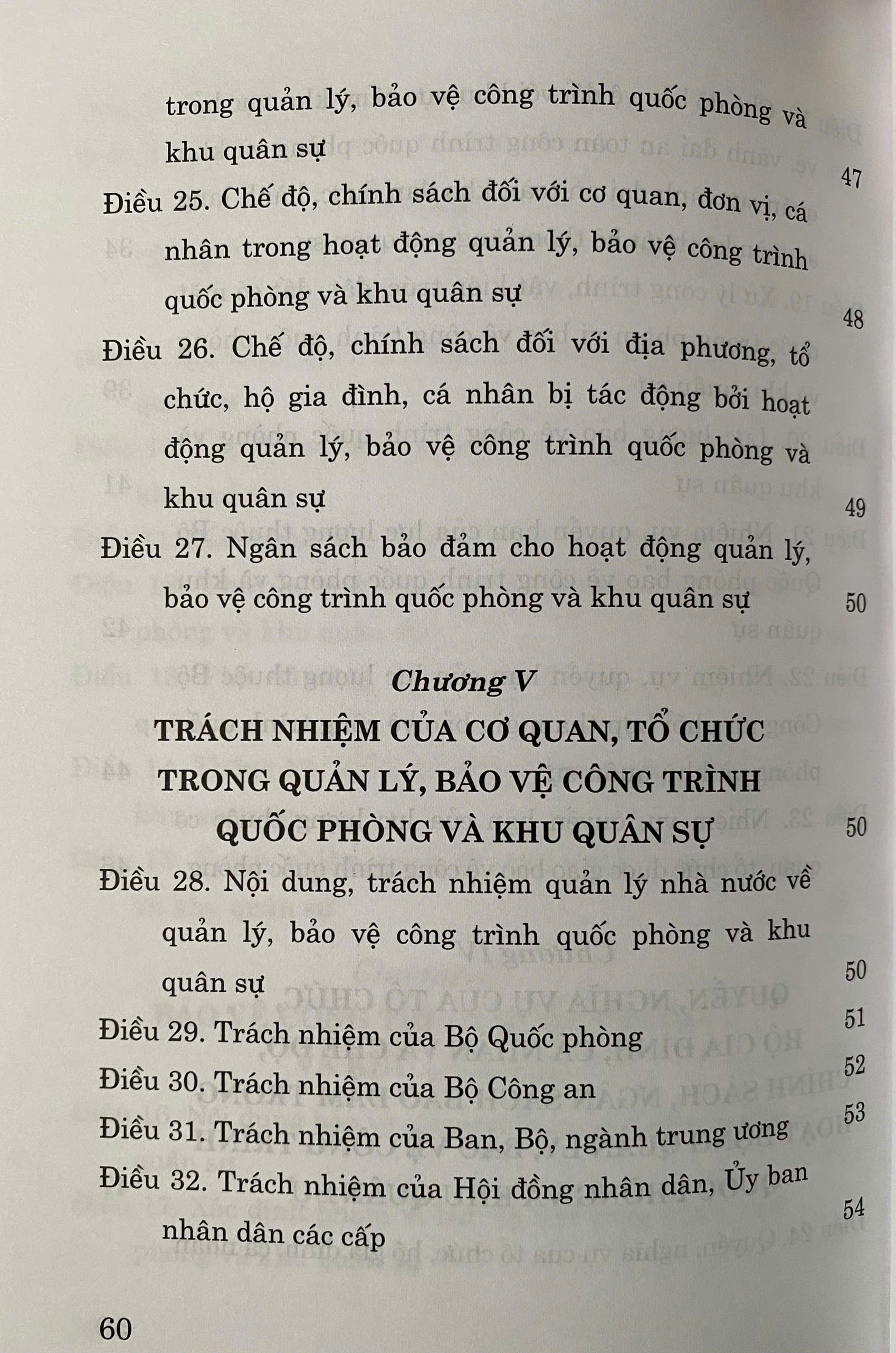 Luật Quản Lý, Bảo Vệ Công Trình Quốc Phòng và Khu Quân Sự số 25/2023/QH15 đã được Quốc Hội thông qua ngày 24 tháng 11 năm 2024. Luật gồm có 6 Chương, 34 Điều.