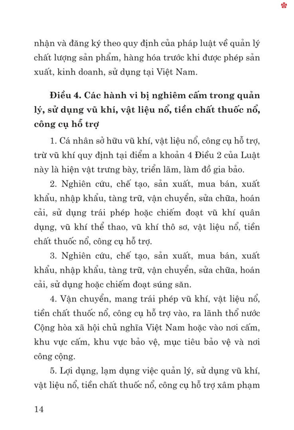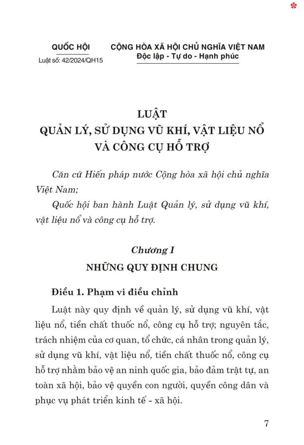 Luật Quản lý, sử dụng vũ khí, vật liệu nổ và công cụ hỗ trợ (sửa đổi) được Quốc hội thông qua gồm 8 chương, 75 điều.