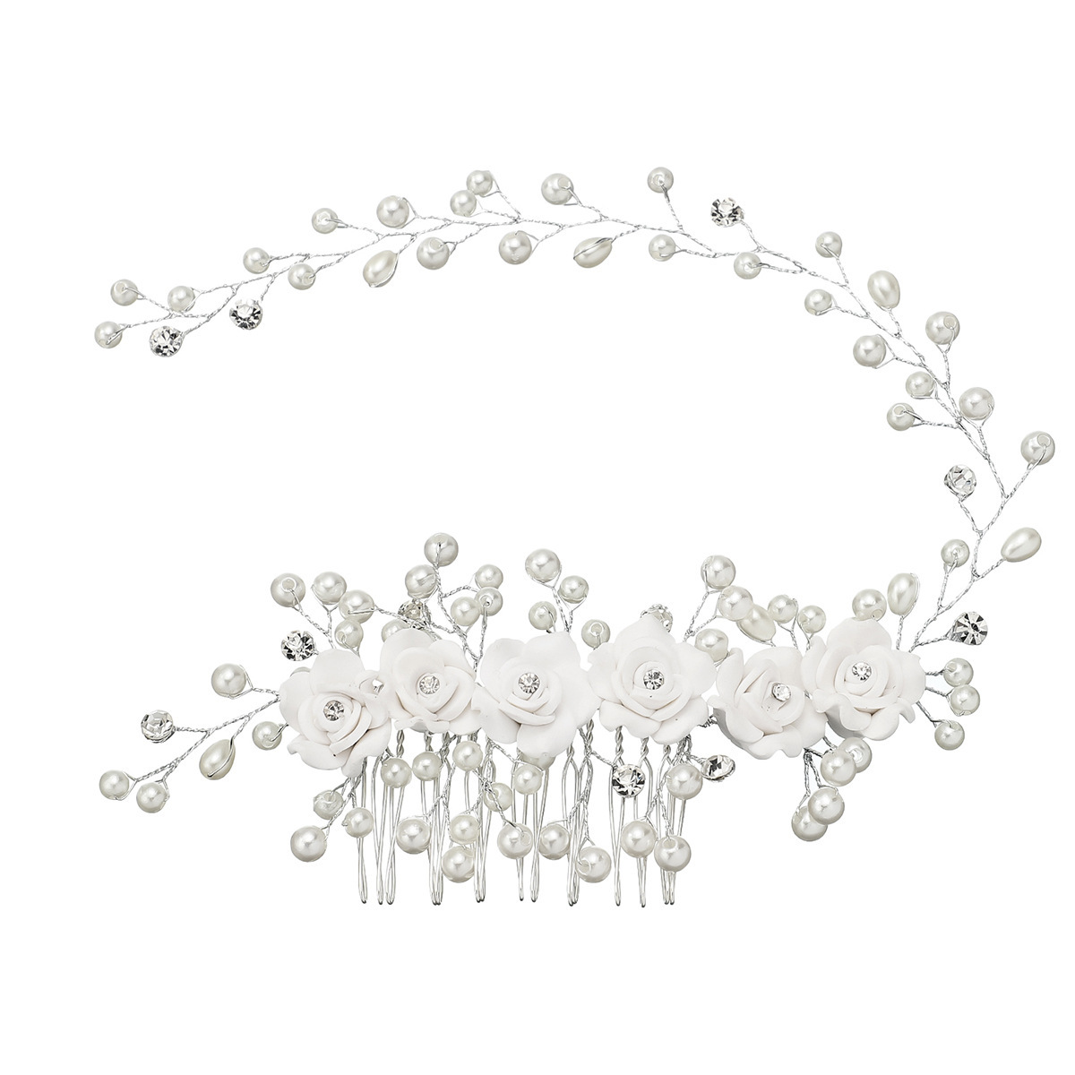 ✨Lược cài tóc hoa trắng trang điểm cô dâu, dạ tiệc