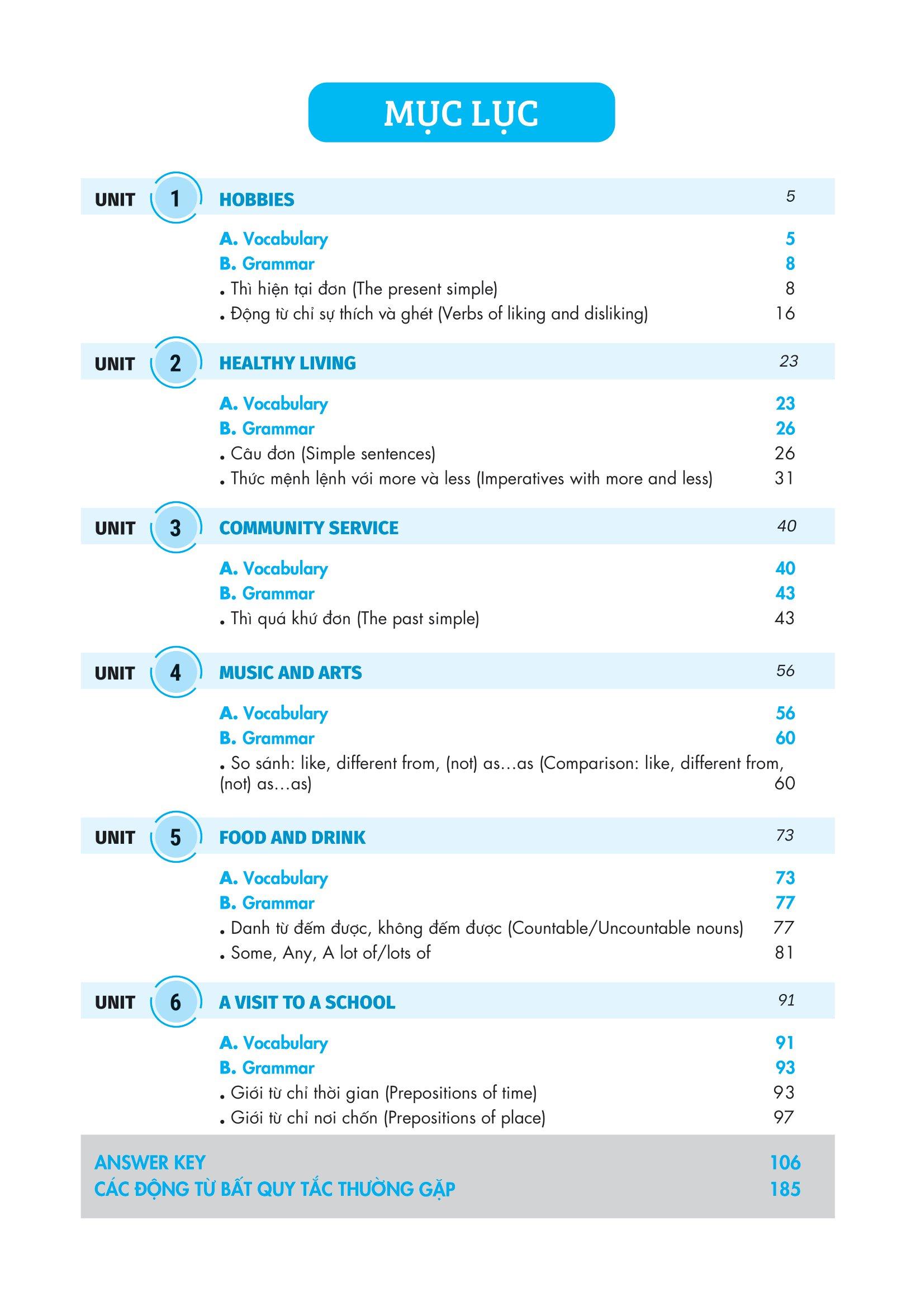 Luyện Chuyên Sâu Ngữ Pháp Và Bài Tập Tiếng Anh Lớp 7 (Tập 1) gồm 6 bài học với Từ vựng – Ngữ pháp – Bài tập tương ứng bám sát chương trình Tiếng Anh cấp THCS, phù hợp với tất cả các đối tượng học sinh có học lực từ trung bình đến khá giỏi.