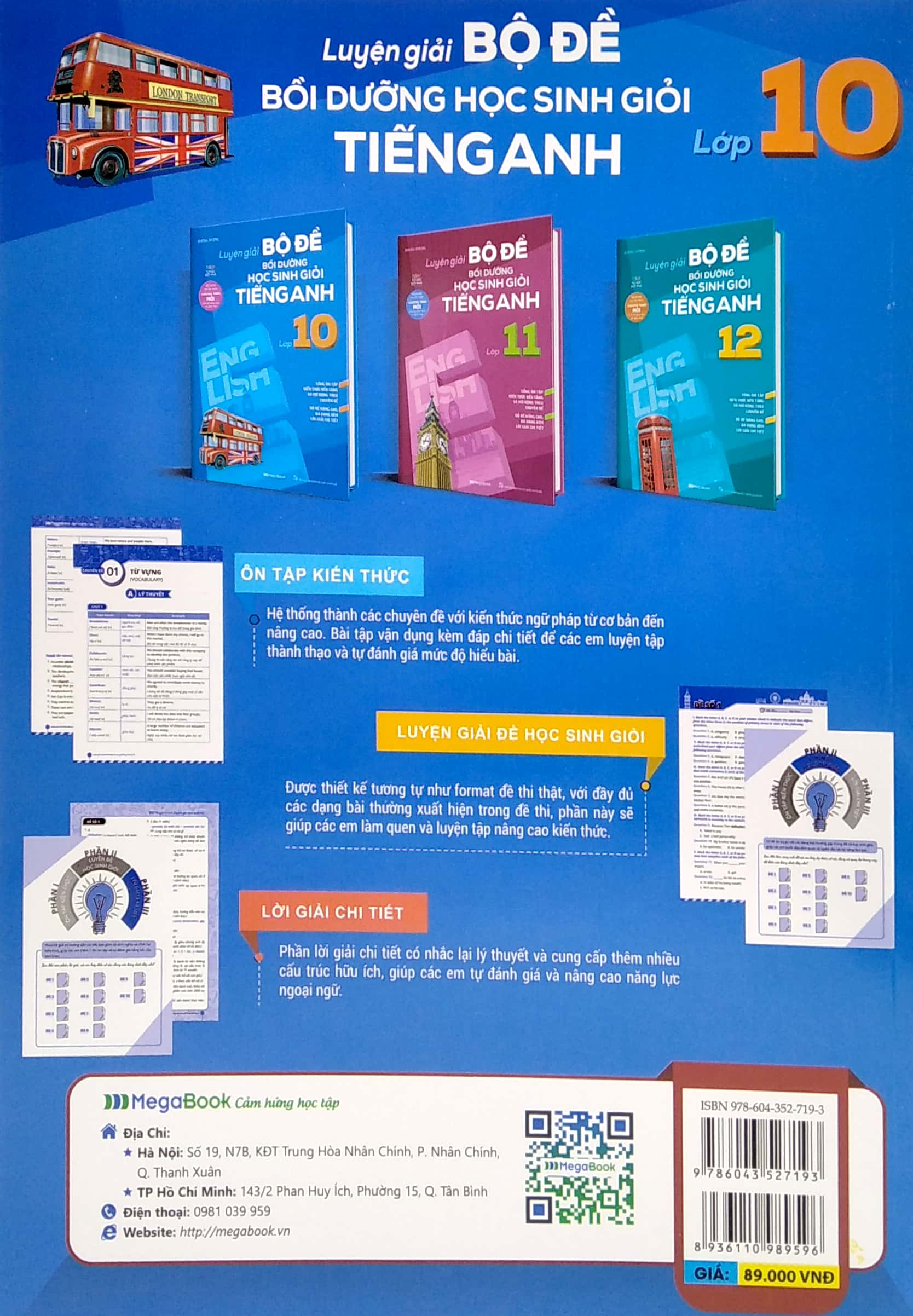 Bộ sách Luyện Giải Bộ Đề Bồi Dưỡng Học Sinh Giỏi Tiếng Anh ra đời nhằm tổng hợp kiến thức tiếng Anh cho các em học sinh giỏi cấp bậc THPT. Bộ sách gồm 3 cuốn tương ứng với 3 lớp: 10, 11, 12, không chỉ giúp các em bổ sung kiến thức đã được học trên lớp mà còn giúp nâng cao khả năng tự học, ôn thi.
