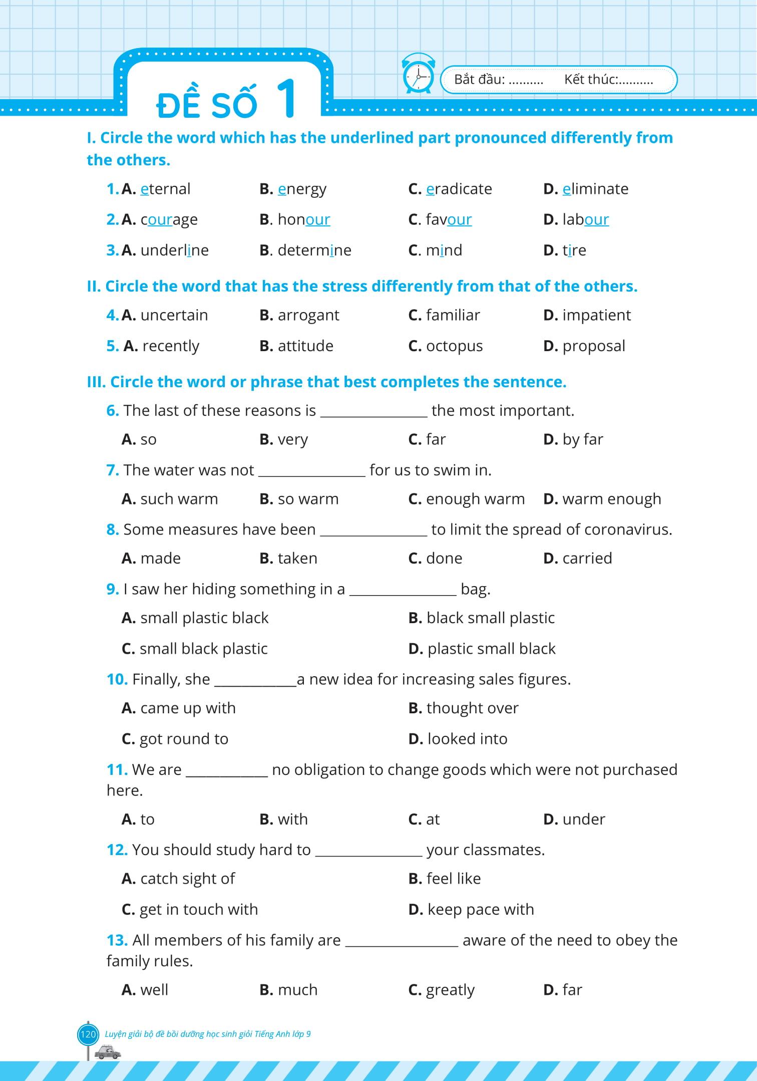 Các đề thi cung cấp hệ thống các bài tập đa dạng, với độ khó tăng dần – Giúp các em làm quen với đề thi thật và từng bước vận dụng những kiến thức đã được học.