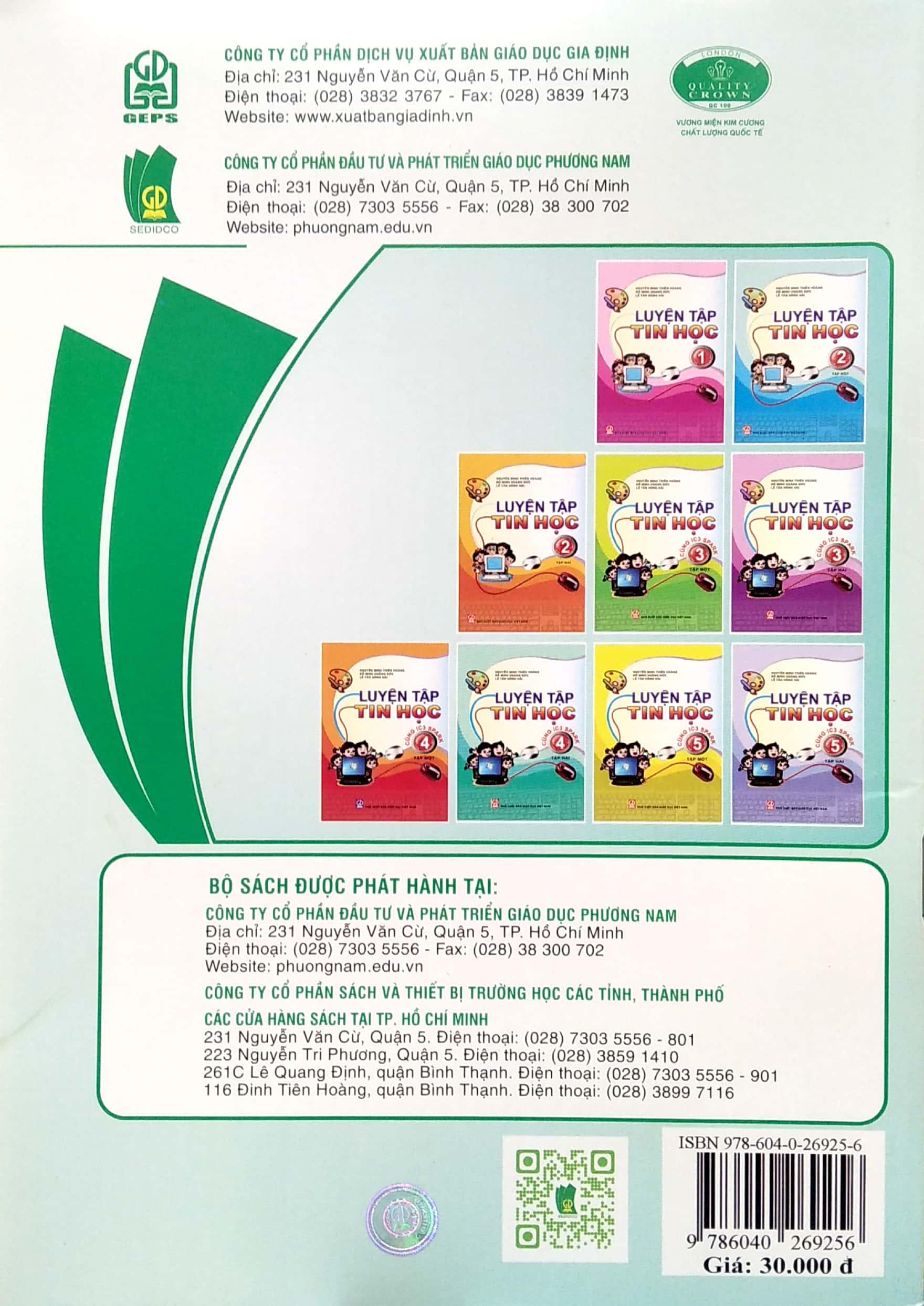 Trước yêu cầu cập nhật những phần mềm, công cụ học tập hiện đại cho việc dạy và học môn Tin học cấp Tiểu học của học sinh Thành phố Hồ Chí Minh, Sở Giáo dục và Đào tạo Thành phố Hồ Chí Minh đã phối hợp với Nhà xuất bản Giáo dục Việt Nam tổ chức biên soạn bộ sách Luyện tập Tin học (cùng IC3 Spark).