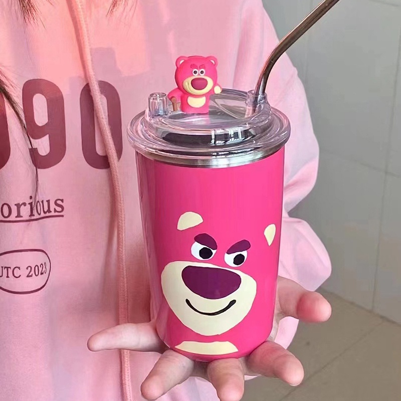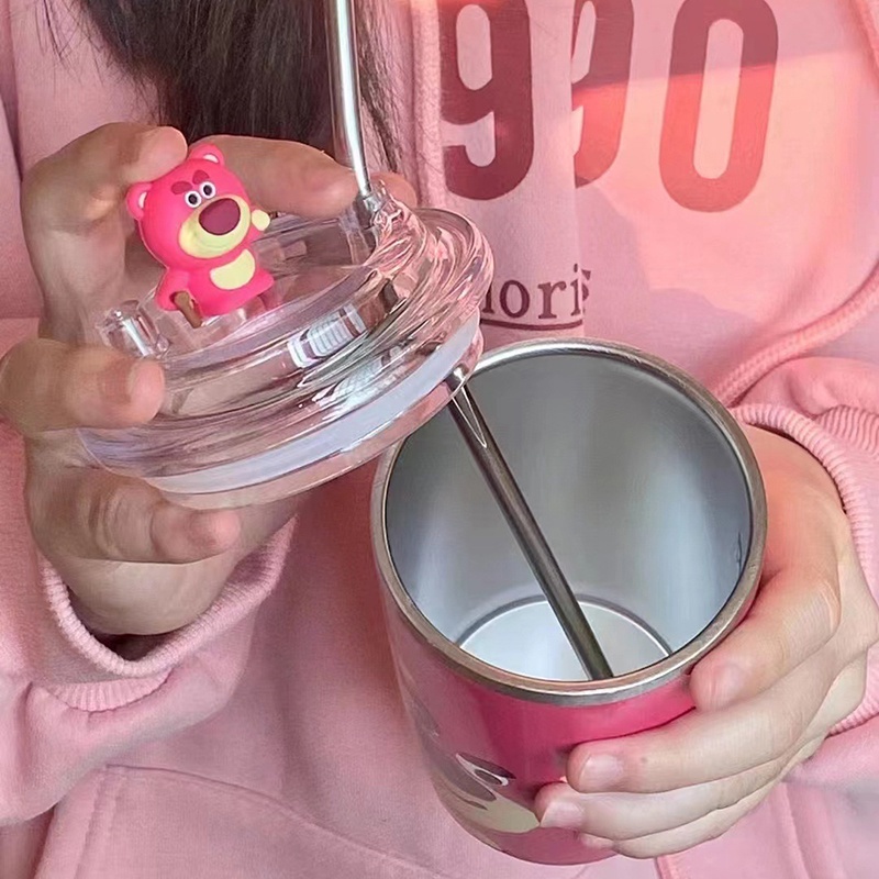 Ly Giữ Nhiệt Gấu Lotso Gấu Dâu Inox 304 Nắp Chống Tràn Kèm Ống Hút