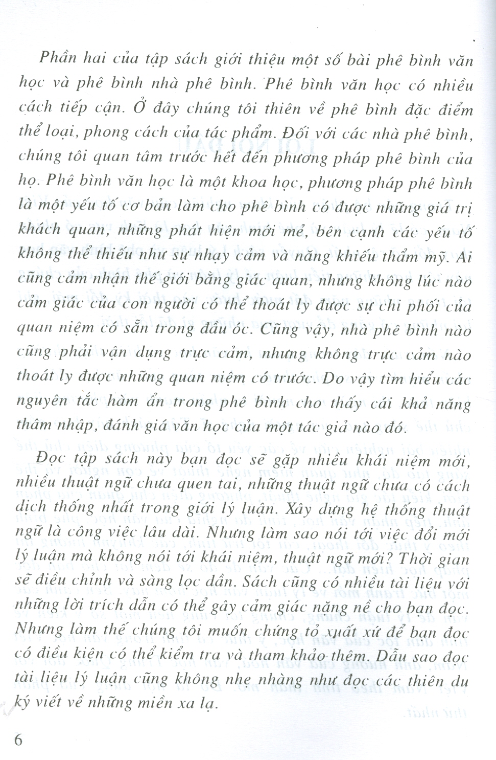 Trong các bộ phận của khoa nghiên cứu văn học của Việt Nam, có lẽ lý luận và phê bình văn học là lĩnh vực có nhiều thay đổi rõ rệt nhất. Quyển sách Lý luận và phê bình văn học này tập hợp những ti tiểu luận về lý luận và phê bình của chúng tôi trong những năm đất nước bước vào thời lại những cố gắng để vượt qua, vào thời kỳ đổi mới, ghi qua những gì ì đã lỗi thời.